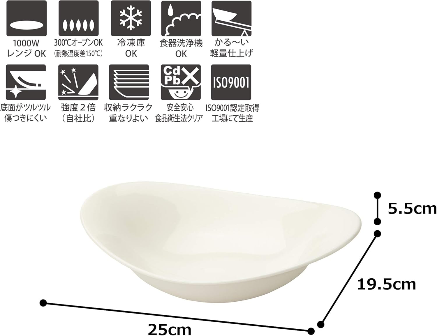 Strength, lightness, and ease of use. The clean white dish matches any dish and its smooth surface is scratch resistant and gentle on both eating and serving dishes.