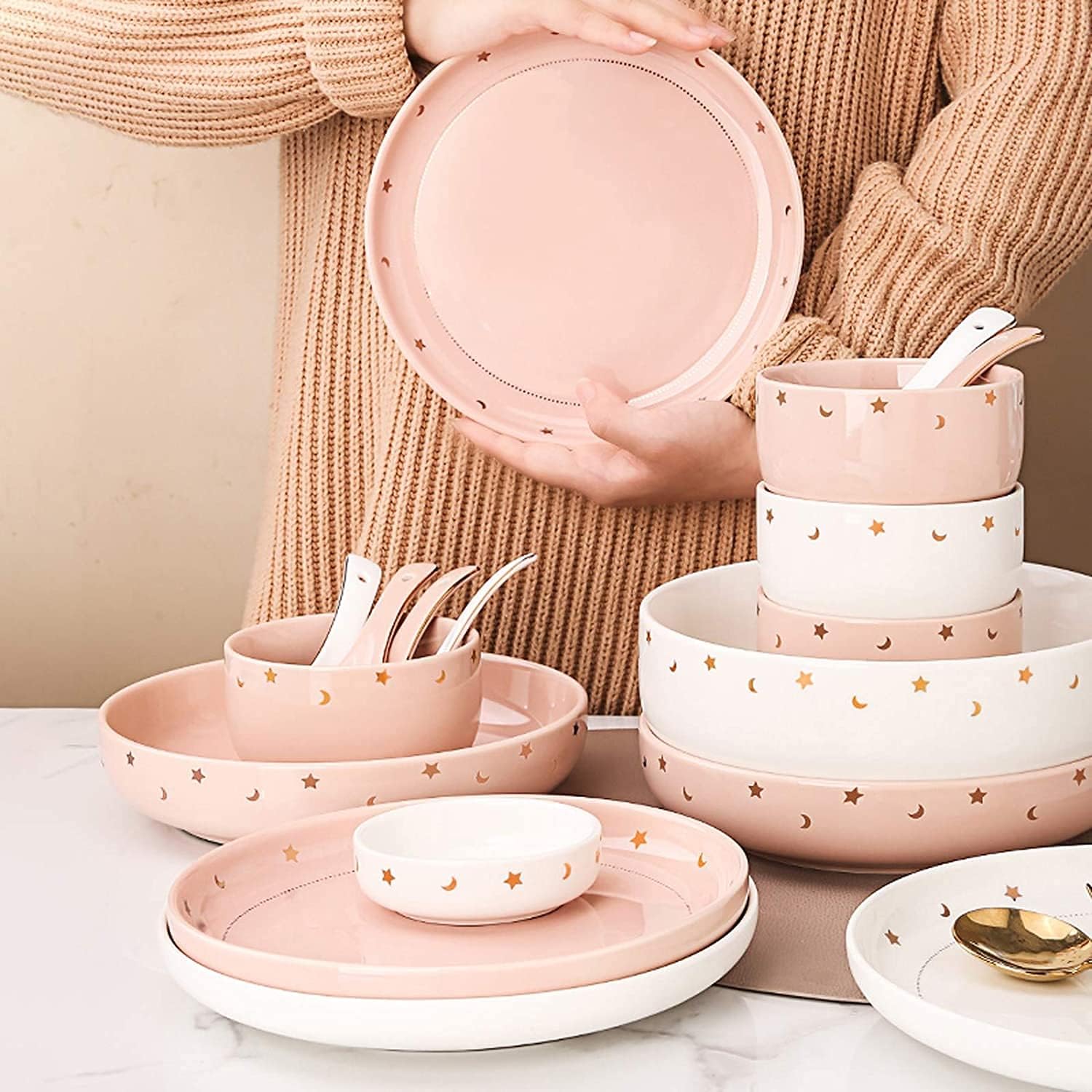 Our store has a variety of styles Dinnerware Set. You can click on the title below () to enter the store to see more styles. ◆ It is very suitable to help you decorate a very fashionable dinner scene for spending quality time with your family and friend. ◆ These pieces go great in a kitchen, dining or outdoor setting.Thank you for choosing , where dishes come true. ENHANCE YOUR DINING EXPERIENCE-surprise your guests with the entire collection of patterns you like! We provide all the basic table tops you need, including various styles of bowls, dip bowls, platters, salad plates and dinner plates! You can check from our brand store IDEAL FOR MAIN DISHES-dinner, brunch. From casual breakfast to exquisite dinner, this multi-functional dinner plate kit can be dressed up or dressed up quickly and easily according to your setting. Material: high quality ceramic Scope of application: microwave oven, oven, disinfection cabinet, dishwasher, refrigerator Disabled: No open flame! Note: spoons cannot enter the microwave oven packing list: 42 pieces: small spoon×8; chopsticks×8; sauce dish×8 4.5'' bowl×8; 7.5'' soup bowl×1 8'' deep dish×4; 8'' shallow dish×4; 12'' fish dish×1 ____(. ? ? ?) - 24/7 Professional Service Team - (. ? ? ?)____ __? Whether you are shopping for the first time or a long-time customer. __? Thank you very much for your support. We are grateful for the pleasure of serving you and meeting your needs. __? If you are not satisfied with your purchase or have questions about the product. email us 24/7 regarding any questions.
