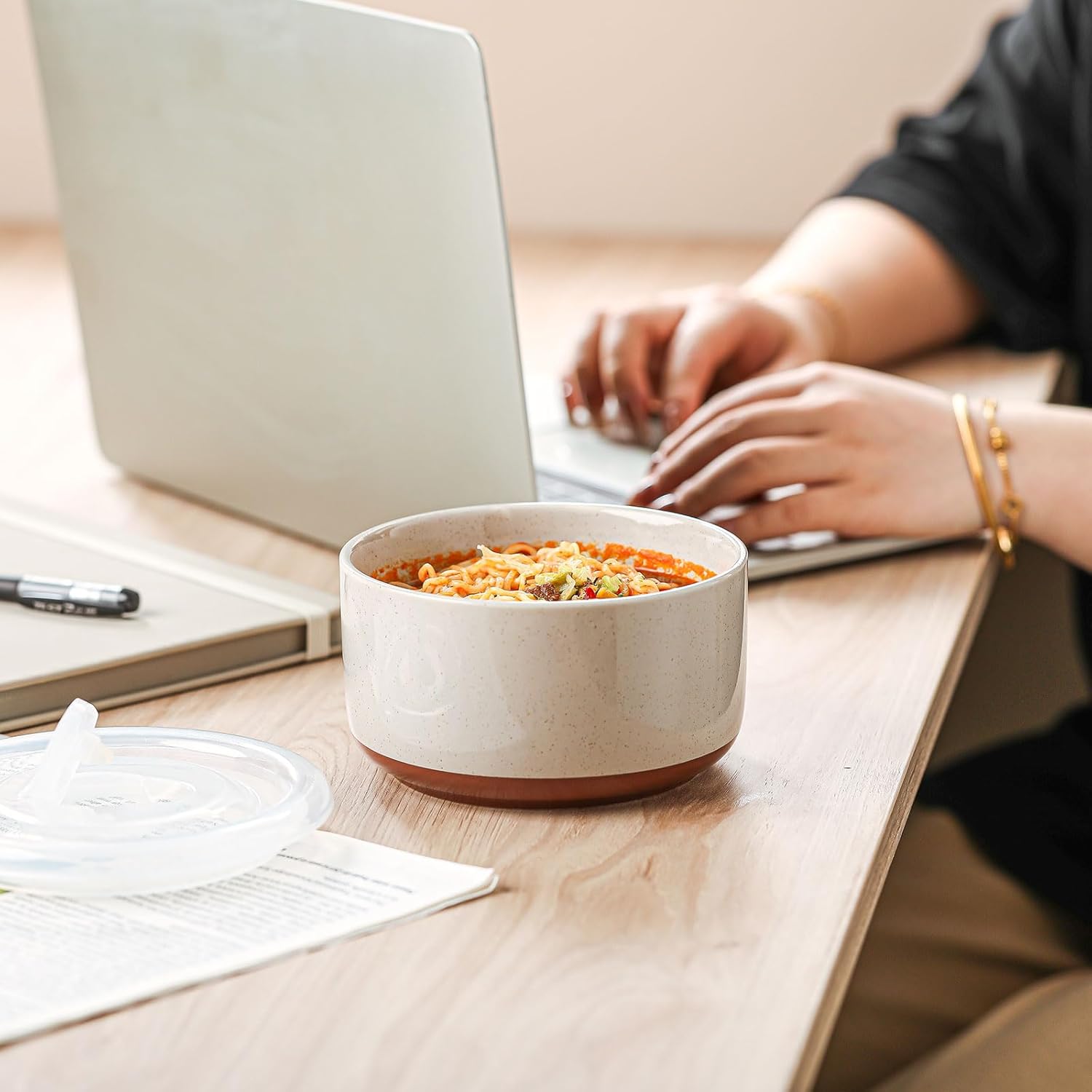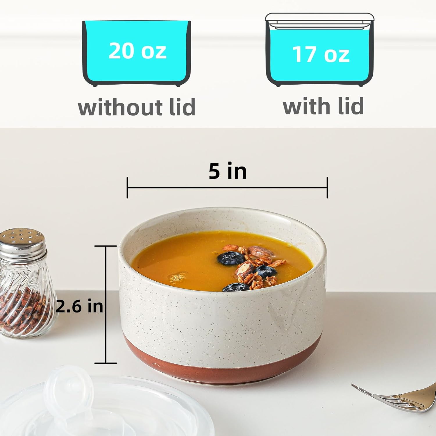 Chubacoo Ceramic Bowl with Lid: 5 inch, 20oz, Unique Dipped Color & Speckle