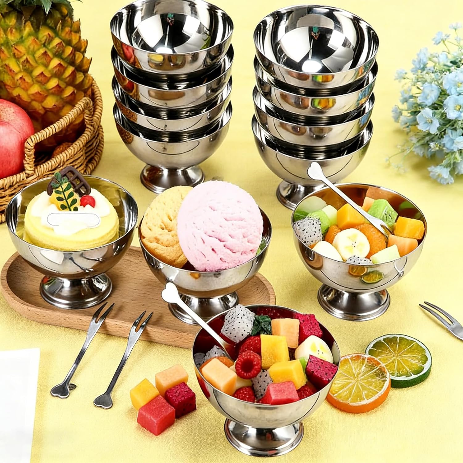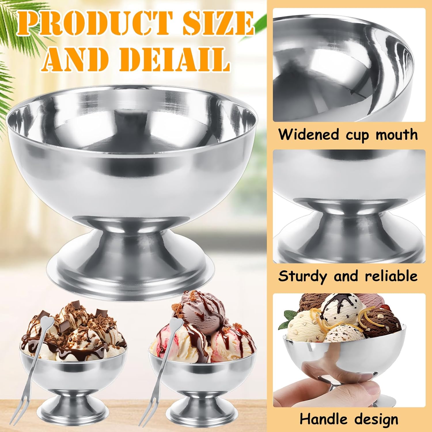 ZUQIAN 6 Pack Ice Cream Cups, Stainless Steel Ice Cream Bowl, Dessert Cups with Forks Serving Dessert Bowls Silver Coupe Glasses for Pudding Dessert Frozen Yogurt Fruit