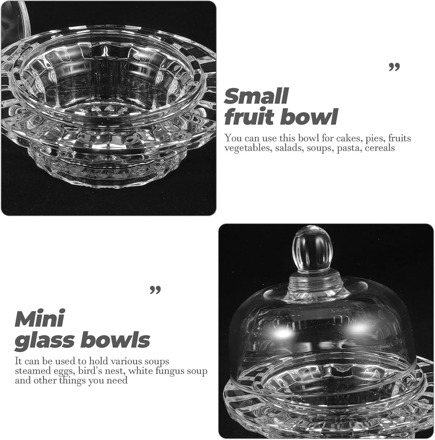 Package Include 1 x Glass Bowl Characteristics -Product Info:Dessert Bowl -Color:Transparent -Material:Glass -Size:12.50X12.50X12.50cm/4.91X4.91X4.91in - This bowl is creative and unique, looks very special and chic small bowls. - The delicate glass bowl is small and , and can add an artistic touch to your dining table salad bowl. - You can use this bowl for cakes, pies, fruits, vegetables, salads, soups, pasta, cereals and much more bowls for kitchen. - This delicate small bowl is designed for rice or fruit holding, very decorative and practical to use bowl. - Perfect small bowl for cold or hot meals. Perfect size for holding soup, dessert, salad, breakfast, etc.Goods Informationsalad bowl This transparent dessert bowl with a lid is and beautiful.ice cream cereal can be used to hold various soups, steamed eggs, bird's nest, white soup and other things you need.serving bowls with lids Practical bowl can be given to others as .small serving bowls This is a dessert bowl, made of glass material,