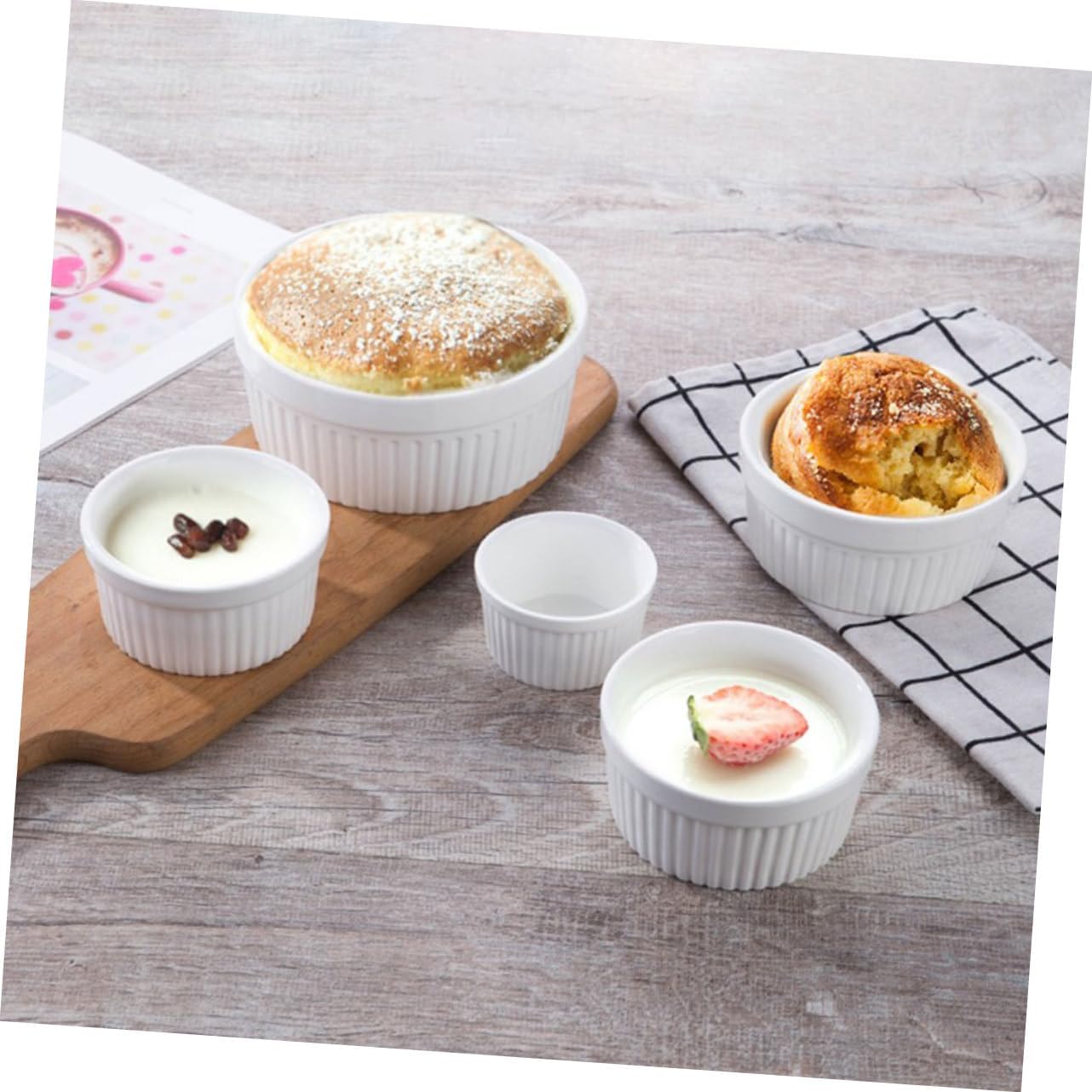 Package List 6 x Bowls Characteristics -Material: Ceramic ramekin bowls. - The smooth of ceramic bowls is easy to clean and will not hurt your hands Baking Pudding Bowls. - The material is superior, the workmanship is fine, and they are Pudding Bowls. - Multifunctional, can be used as snack bowls, baking , pudding bowls serving bowls. - Share with your friends and family, because these are the best housewarming small serving bowls. - They can be used in dishwashers, microwaves, refrigerators and ovens for dessert.Goods Informationceramic pudding bowl The stylish bowls are suitable for your favorite desserts, such as chocolate mousse, tiramisu, jelly, pudding, etc.pudding ceramic bowl The dessert bowls are made of ceramic material, which are and to use.Pudding Bowls Fashion and elegance