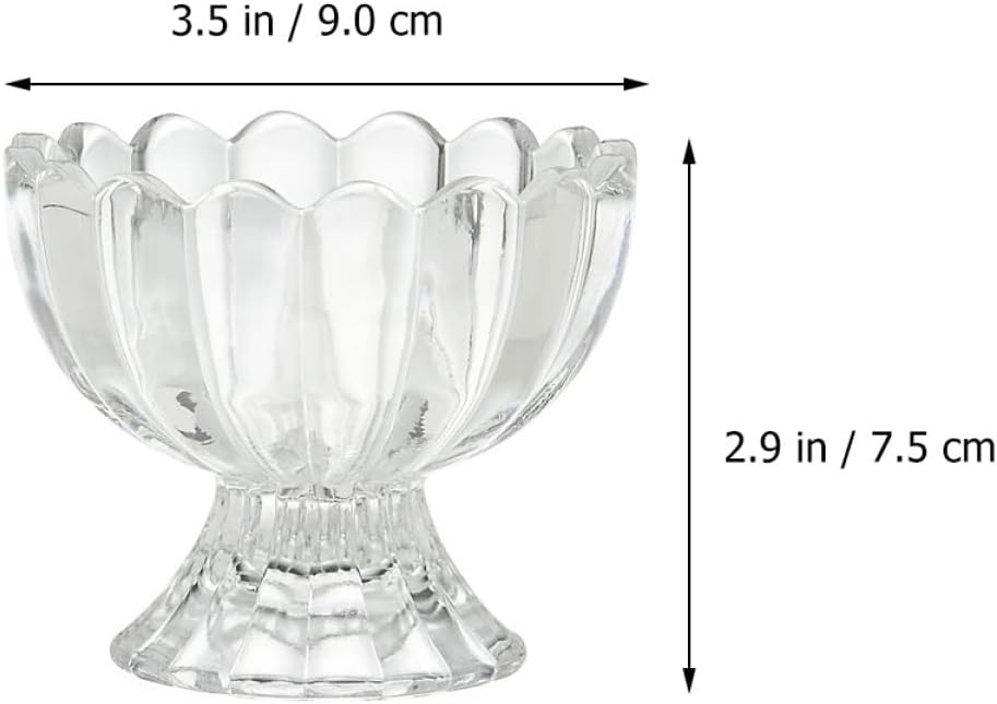 Package Include 6 x Cups Features -Capacity: 100ml footed dessert bowls. -Size: About 9.00X9.00X7.50cm/ 3.54X3.54X2.95in ice cream footed bowls. -Material: Glass dessert bowls. -Color: Transparent Dessert Cup. - Made of glass material, and small dessert bowls. - Suitable for home furnishings, cafes, restaurants, hotels, etc reusable pudding cups. - The design is simple, the shape is unique, and the use effect is Dessert Bowl. - They can hold jelly, ice cream, , etc ice cream bowl. - These are great your friends' housewarming party cups ice cream bowls.Goods Descriptionclear fruit cup These cups are suitable for ice cream, desserts and puddings.clear cups Made of glass material, and suitable for long-term use.ice cream cups The design is and can hold ice cream, fruit, pudding, etc