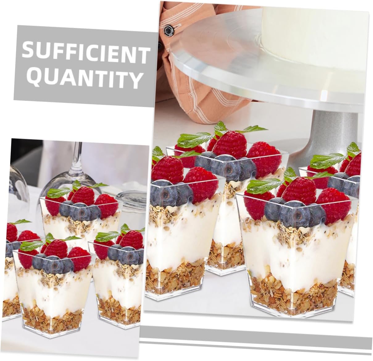 Package List Dessert Cups with Lids Spoons Characteristics -Size(Cup):9.00X5.80X5.80cm/3.54X2.28X2.28in cake cups -Size(Spoon):10.00X2.50X0.50cm/3.93X0.98X0.20in party accessories -Capacity:160ml household pudding cup -Material:PP mousse cup -Color:Transparent multi-function tiramisu cup - This item is a dessert serving cup, which is made of material, safe to use and the clear design can displaying your tasty dessert household dessert cup. - Suitable for home kitchen, hotel, restaurant, bakery, cake shop, shopping mall, etc, which is very useful mini dessert cups. - Dessert cups are suitable for jellies, tiramisu, mini desserts, fruits, mousses, puddings, yogurt, ice cream snow cone cup. - Clear dessert cups has transparent design that allow you to display your desserts conveniently multi-function dessert cup. - The stable bottom is not easy to slid, which is sturdy and non-sliding. Dessert cup can store more drinks or ice cream at one time delicate mousse cup.Goods Informationdelicate dessert cup Are you looking for clear dessert cups? Are you looking for a decorative Dessert Cup to use in your desktop or for special occasions? Our storage cup decorates your party easily and bring your family deep impresses with cordial reception, clear dessert cups are a must-have for any dessert