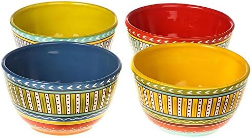 Add a splash of color and style to your dessert table with the Certified International Corp Valencia Ice Cream Bowl 4-Piece Set. Perfect for serving ice cream, puddings, fruit, or other sweet treats, this vibrant set combines playful design with practical functionality, making every dessert experience more enjoyable. Each bowl is crafted from durable stoneware, ensuring long-lasting use while providing a smooth, easy-to-clean surface. The colorful, multi-patterned Valencia design brings a cheerful and modern aesthetic to any table setting, making it ideal for both everyday use and special occasions. This 4-piece set is perfect for families, entertaining guests, or adding a lively accent to your kitchen décor. Its versatile design also makes it suitable for snacks, small salads, or creative presentations of desserts, allowing you to serve in style.
