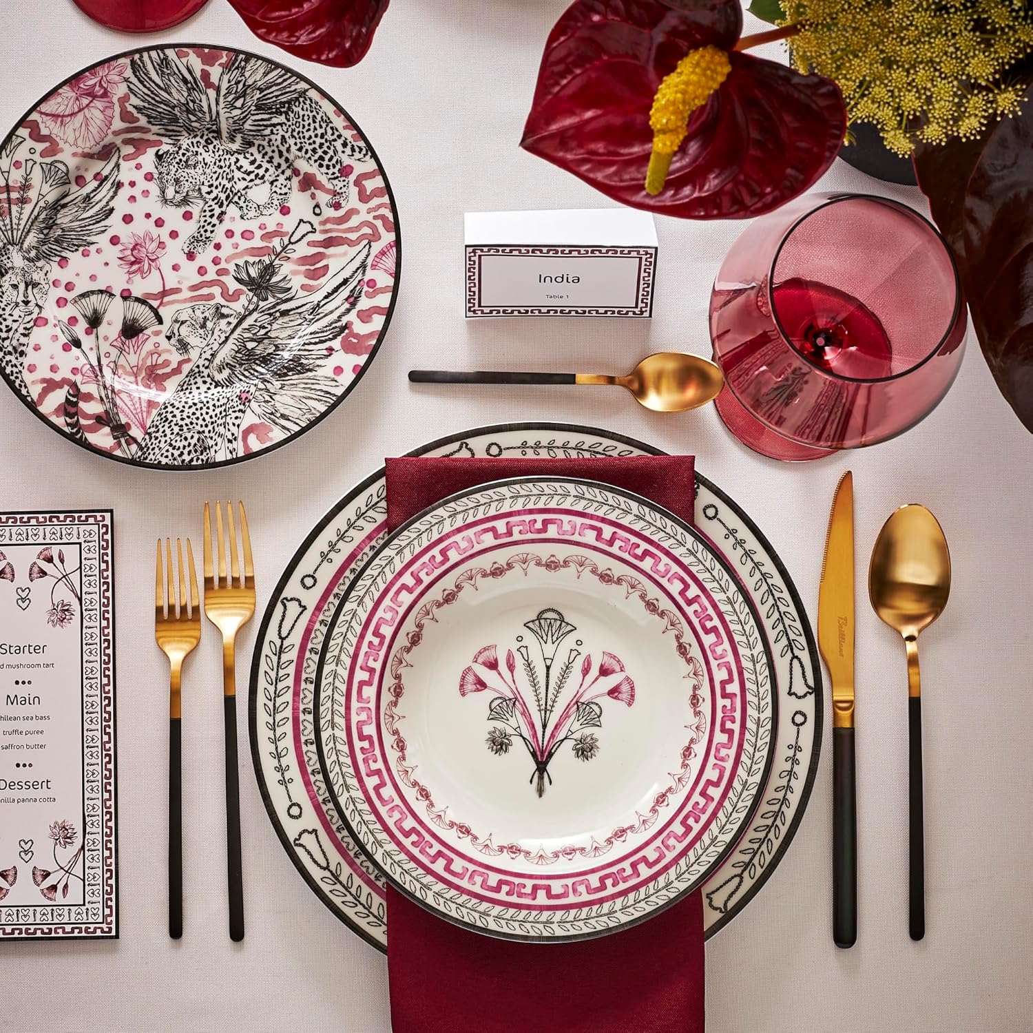 An invitation to live artfully. The Marchesa Serengeti 4 -piece porcelain pasta bowl set brings eclectic romanticism and playful sophistication to every dining experience.