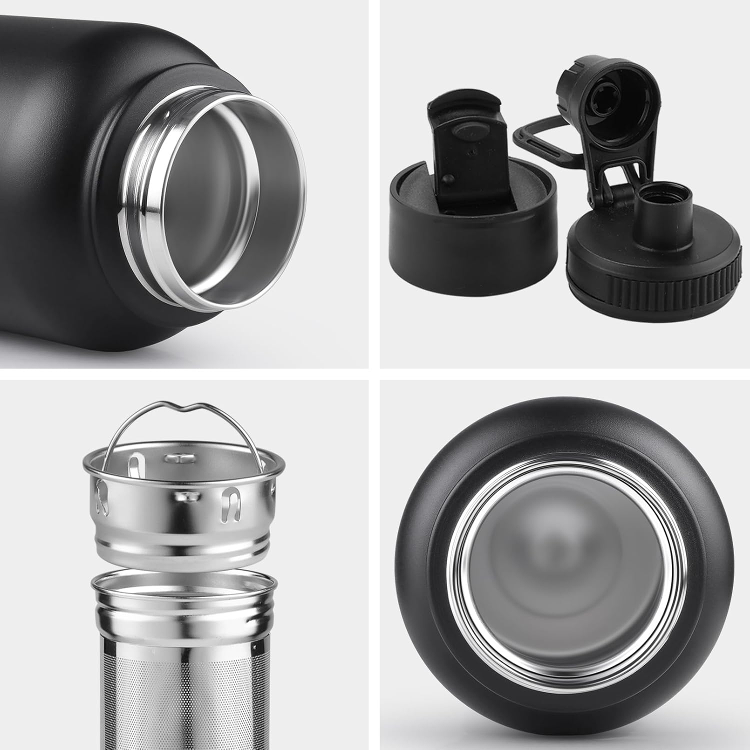 Sivaphe 32 oz Tea Infuser Bottle With Removable Filter,18/8 Stainless Steel Insulated Water Bottle for Loose Leaf Tea,1L Strainer Travel Tumbler with Lid Black