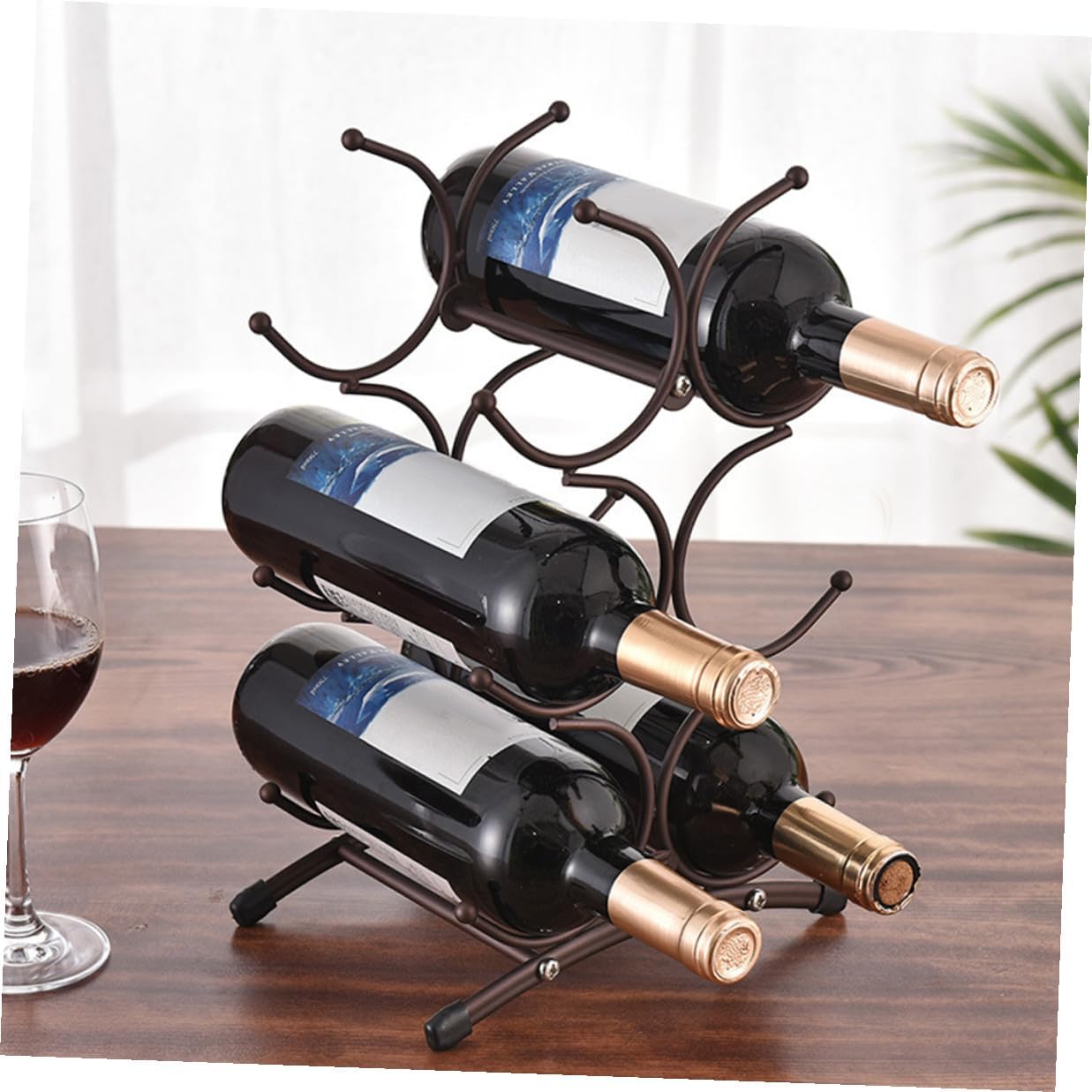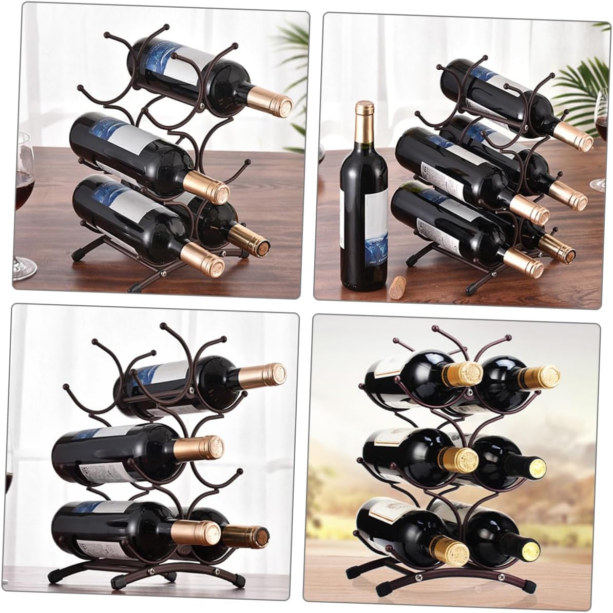 Package Include 1 x Wine Rack Characteristics - Material:Iron - Size: 35.50X23.00X16.00cm/13.95X9.04X6.29in -Product Info:Red wine rack - This wine rack adds reasonable storage space and decorative style to your dining room, kitchen countertop or bar area iron wine bottle display rack. - Delicate workmanship, to keep its popularity and utility. Integrated assembly, strong and light table wine rack. - This wine rack can be used as a to send to your friends or family member, and they will like it wrought iron storage rack. - Very suitable for wine lovers or those who like to collect wine, and this rack is a wine storage artifact wine rack small space. - ColorDark Brown - Made of iron which features with stability and durability, very hard and smooth for usage storage display rack.Goods Informationbar wine holder The creative and design makes it eye-catching and eye-catching.bar bottle rack Suitable for wine cabinets, home furnishings, restaurants, bars, wine bottle display and home decoration.countertop rack holder The display rack is designed to hold wine, and keep it organized