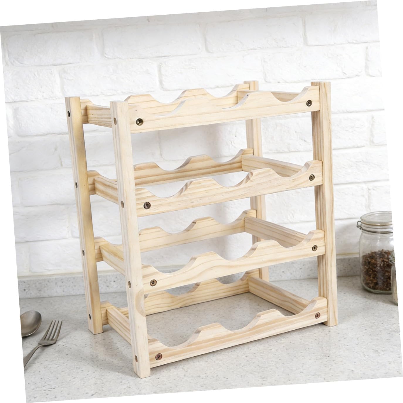 Package Include 1 x wine rack Characteristics - Size: 39.50X34.40X22.00cm/15.52X13.52X8.65inch Wine Rack Adornment. - Material: Wood Wine Bottle Rack. - Secures bottles, cans, and sealed jars. Also be a wonderful decor for your house Wine Bottle Stand. - ColorBeige Household Wine Shelf - Suitable for home daily use, hotel desktop wine display, wine cellar use Wooden Wine Stand. - Multi-layer style is designed for easily stacking of wine bottles, cans, and jars Decorative Wine Rack. - With anti-skid bottom design prevents bottles from or rolling Wine Storage Stand. - Constructed by using high-grade material, it safety and can use it with confidence Wine Storage Holder.Goods DescriptionHousehold Adornment This wine bottle storage rack has a stylish and elegant design with a fine workmanship which is a beautiful addition to the table or countertop in your kitchen, living room, dining room, or anywhere else in your home.Decorative Wine Holder Fine grinding, smooth surface, safe to the bottle.Wine Storage Holder Suitable for home daily use, hotel desktop wine display, wine cellar use