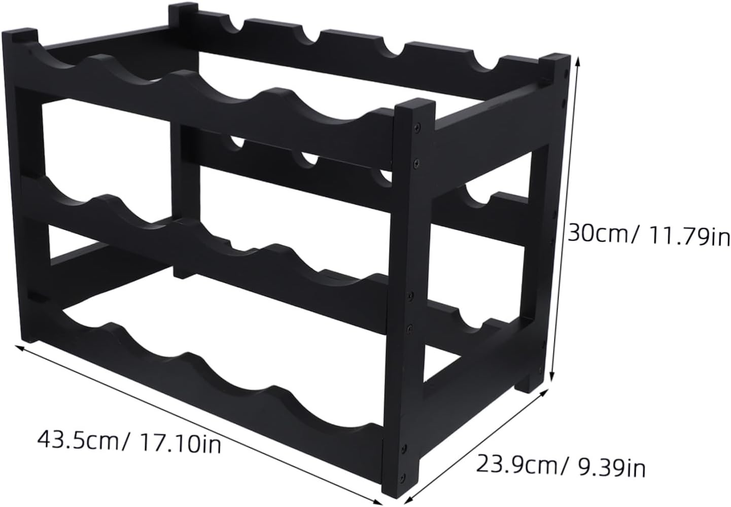 Package Include 1 x Wine Rack Organizer Characteristics -Size:43.50X30.00X23.90cm/17.10X11.79X9.39in wine bottle shelf -Versatile compatibility: this wine rack fits seamlessly into various interior styles, making it ideal for both casual and formal settings, enhancing the overall ambiance wine organizer -Stable and secure: the independent structure provides strong support, ensuring your wine bottles are stored securely and reducing the risk of accidental tipping wine cabinet -Quick access: the open design allows for easy access to your wine collection, so you can quickly find and enjoy your favorite bottle tabletop wine rack -Color:Black wine storage shelves -Material: , stainless steel corner wine rack - construction: made from black , this wine rack offers a natural, elegant look that complements modern and minimalist home decor wine holder for cabinet -Maximized space: the 3-tier design of this wine rack allows for the storage of up to 12-bottles, making it a practical solution for maximizing space in your kitchen or dining room wine storage rackGoods Descriptionwine storage racks Its stackable design allows for easy placement in kitchens, dining rooms, or bars.wine holders stands for counter The elegant black finish blends seamlessly with rustic or contemporary decor, offering both functionality and style.wood wine bottle rack this wine rack provides a practical storage solution for organizing bottles in a compact space