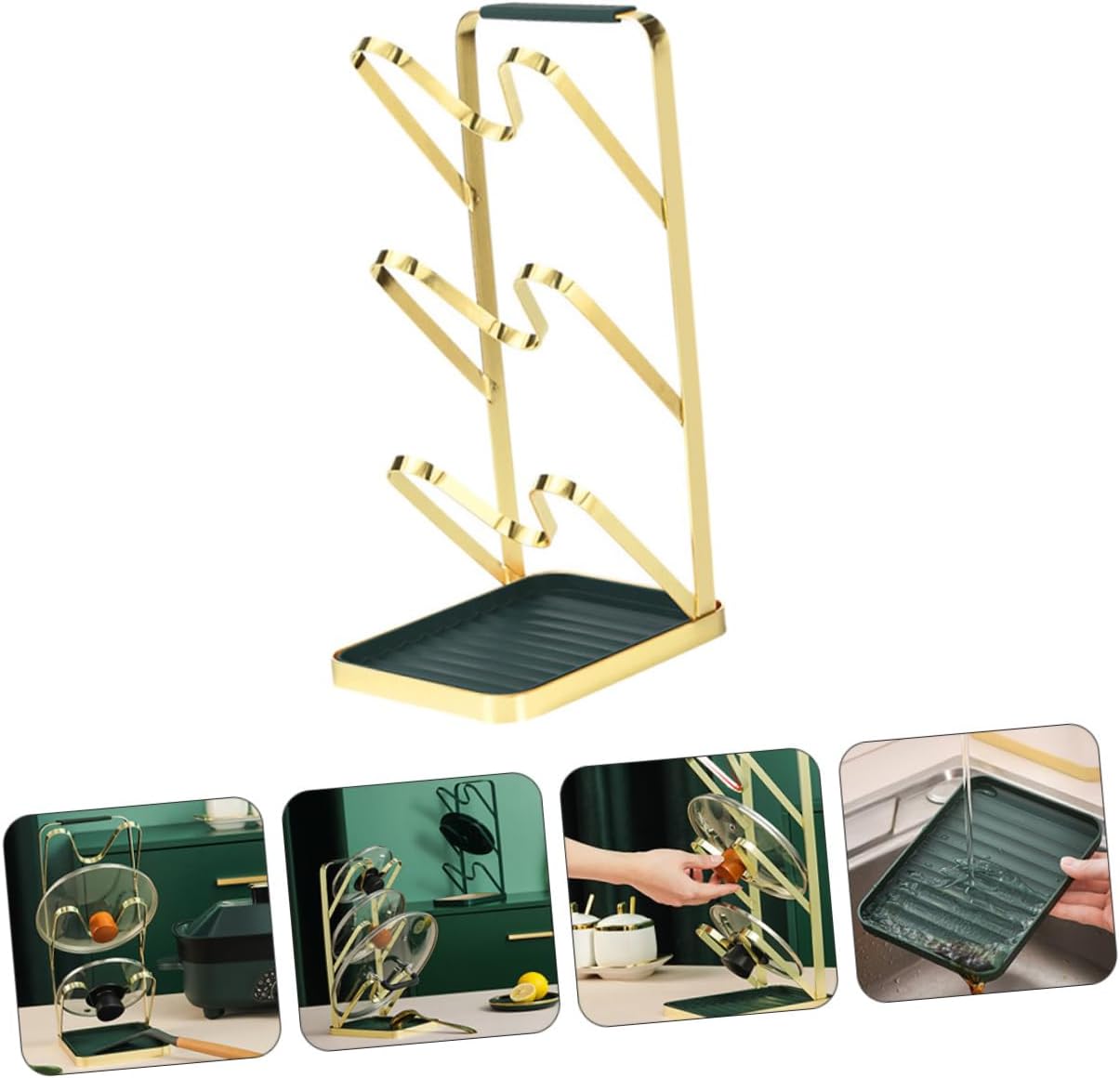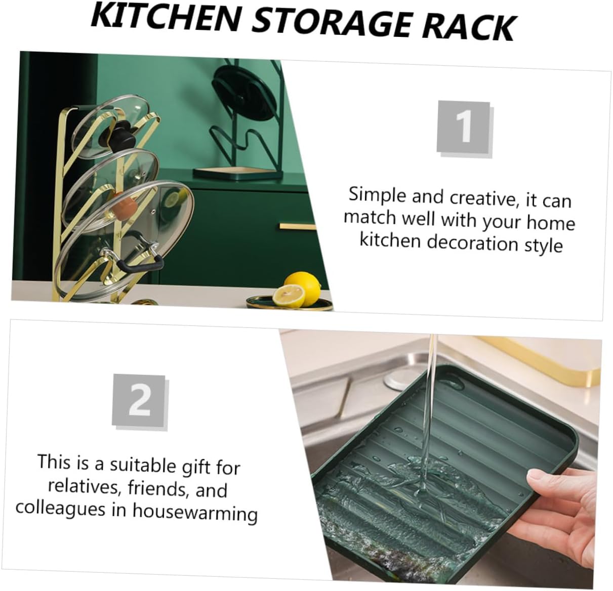 Package Include 2 x Storage Rack Features - Size: About 34.80X18.80X14.00cm/13.68X7.39X5.50inch Kitchen Storage Organizer. - Color: Golden Pot Cover Storage Shelf. - Material: PP, silicone, iron Kitchen Storage Holder. - Made of PP, silicone and iron material, which is sturdy and durable for use. Pot Lid Rack - This storage stand is easy and convenient to use without damaging wall Home Storage Rack. - Large capacity, three layers design, easy to store your pot lids and tray can hold other items Pot Cover Storage Stand. - This is a suitable present for relatives, friends, and colleagues in housewarming Pot Cover Storage Rack. - Simple and creative, it can match well with your home kitchen decoration style Kitchen Storage Rack.Goods InformationKitchen Storage Holder The reasonable design allows US to store kitchen supplies such as pot lids, chopsticks, spoons and so on.Kitchen Storage Rack This is a kitchen storage rack, which is made of materials and has a .Pot Lid Shelf This storage rack has been treated with craftsmanship and can be used safely