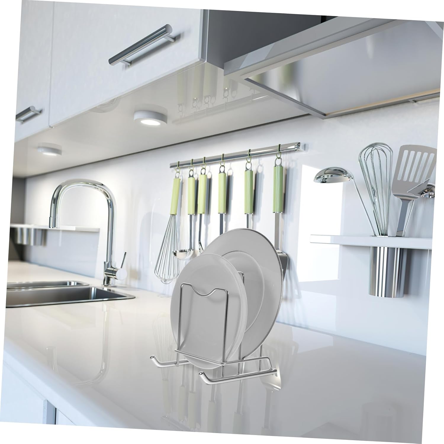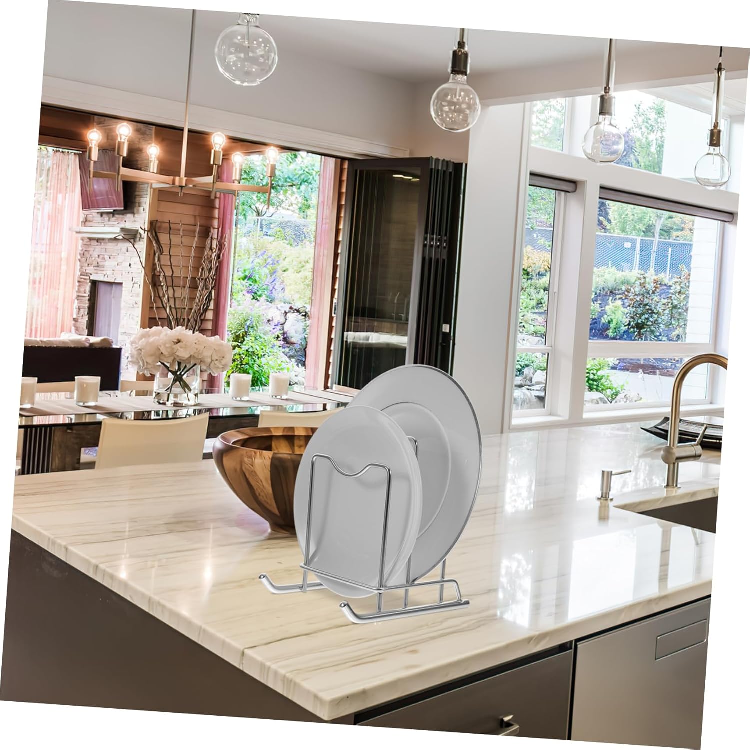 Package Include 1 Storage Rack Features -Material: iron two-tier storage rack -Color: Gold pot cover holder -Size: 20.00X19.50X16.00cm/7.86X7.66X6.29in pot cover storage rack - Simple design with fine workmanship, also can be a decoration for your kitchen pot lid holder. - Features multipurpose, this rack can hold pot cover, cutting board and other kitchen supplies kitchen pot lid holder. - This cutting board organizer can stand stable on flat surface. It securely holds items and keeps them organized pot lid holders. - The round edges design helps protect against scratches, and the anti-skid backing keeps everything firmly in place pot lid stand. - for every kitchen. It’s also easy to clean, just wipe clean with damp cloth pan lid organizer.Goods Descriptionkitchen lid organizer Are you looking multi-function kitchen storage rack? Our item is a choice.two-tier storage rack This rack is made of iron material, which is and long-time use.pan lid organizer The design of this product solves the problem that there is no place to put the cutting board, or that can easily grow in the corner of a damp house