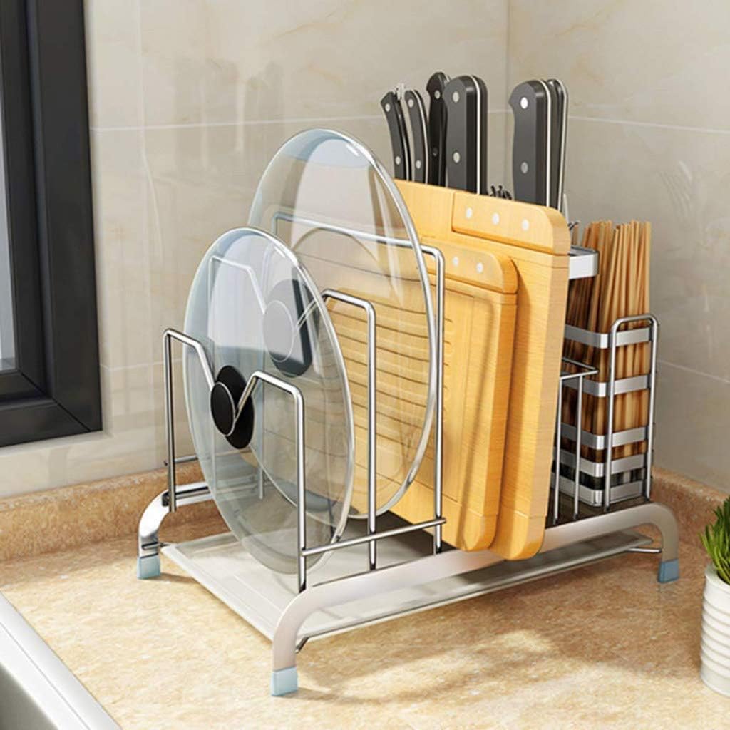 It mounts inside a kitchen to safely and securely stores large pot lids. A good tool for you to organize any size of lid.Product Description:Material: stainless steelPackage Weight: Approx. 2kgFor: Kitchen, bar, restaurantSize: 33.5*21*24.5CMFeatures:Perfect storage solution for your pot and pan lids, keeping them organizedEasy to clean and it is great gift for housewife. Can be placed any size of spoon, spatula and help to keep the environment clean. Material and fadeless. Can offer a new place to your everyday lid rest. Fashion design, convenient to carry and clean.