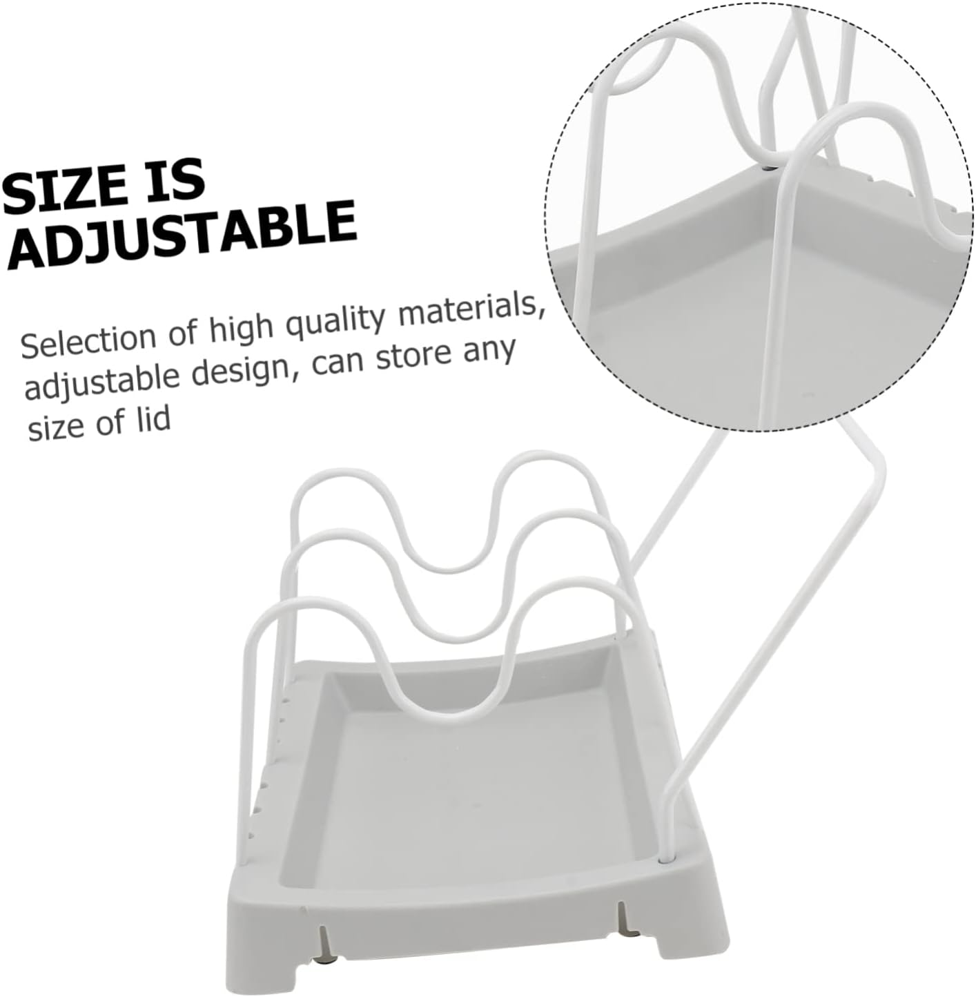 Package Include 2 x pot lid rack Features -Material: PP, Iron Tabletop Pot Lid Rack. -Color: Grey Kitchen Pot Lid Organizer. -Size: About 21x17x16.8cm/8.25x6.68x6.6 inch Pot Lid Stand. - placing spoons, pans and lids Kitchen Pot Lid Holder. -Removable design, can be adjusted freely according to the size of the kitchenware Pot Lid Shelf. -Adjustable pan lid storage rack, every Kitchen Pot Lid Bracket. -The storage rack is easy to clean and maintain Pot Lid Rack. -Suitable for the organization of kitchens, restaurants, and hotels, elegant and space-saving design of modern kitchens Pot Lid Organizer.Goods DescriptionPot Lid Organizer This pot lid stand is easy to use, a nice helper for your kitchen life.Pot Lid is made of , adjustable design, can store any size pot lids.Tabletop Pot Lid Organizer Are you still upset by the kitchen utensil clutter? This well-made pot lid organizer will help you to solve the problem