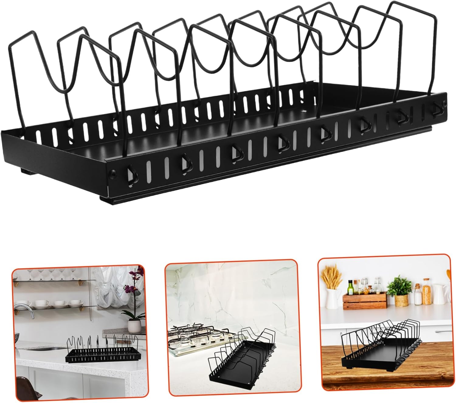 Package Include 1 storage rack Features -Metal material: constructed from metal, this organizer is designed to be sturdy, ensuring durability pot organizers inside cabinet -Versatile use cases: suitable for various environments such as home kitchens, restaurants, and hotels, offering a practical storage kitchen pots and pans organizer -Size:42.00X23.00X14.00cm/16.51X9.04X5.50in pan rack organizer for cabinet -Color:Black kitchen storage -Sliding rail: the sliding rail provides smooth and easy access to your stored items, enhancing convenience in the kitchen adjustable bakeware rack -Material:Metal kitchen cabinet organizer -Efficient space management: the drawer design helps to efficiently manage kitchen space, keeping it organized lid rack for pot lids -Adjustable storage: the pot lid organizer features adjustable dividers, allowing you to create storage for your cookware cabinet slide out organizerGoods Informationlid organizer pots and pans This pot lid organizer helps maintain a tidy kitchen, making it an ideal for cooks who need quick access to their cookware.pot lid organizers inside cabinet Optimize your kitchen storage with this adjustable pot lid rack.pan lid holder The expandable design, featuring adjustable dividers and a sliding rail, fits inside cabinets