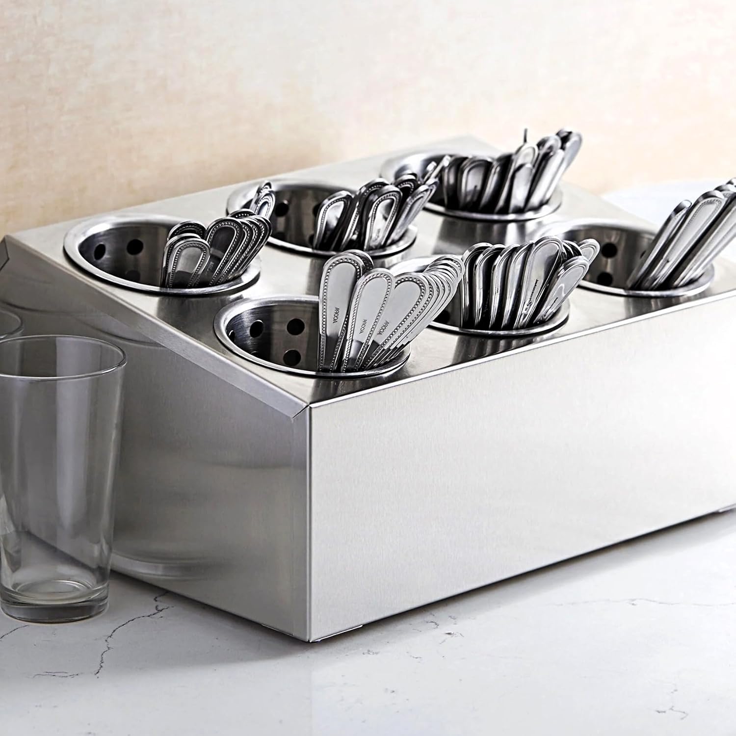 Upgrade your kitchen or foodservice setup with the GEEX DEPOT Perforated Stainless Steel Flatware Cylinders (Pack of 12). Designed for both commercial and home use, these utensil holders are crafted from durable stainless steel that resists rust and maintains a polished look even after repeated use. The perforated design allows for maximum airflow, ensuring that wet utensils dry quickly and stay sanitary. Each cylinder is versatile enough to hold forks, spoons, knives, chopsticks, or even straws, making them a practical solution for restaurants, cafeterias, buffets, and busy households. With their sleek stainless steel finish, these flatware cylinders fit seamlessly into any kitchen or dining setup. Cleanup is effortless thanks to their dishwasher-safe design, and the four-pack ensures you have plenty of storage for every utensil type. Whether you’re a professional chef, restaurant owner, or home cook, the GEEX DEPOT stainless steel utensil holders provide the durability, hygiene, and convenience you need for everyday use.