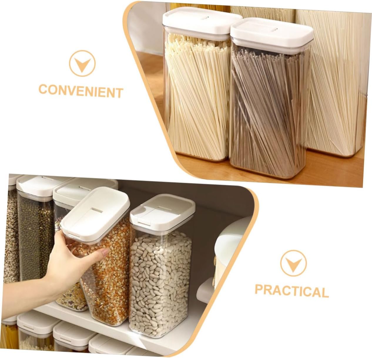 Package List 5 x box Characteristics - Color: As Shown storage containers for pantry -Size 1800ML:30.00X11.40X7.40cm/11.79X4.48X2.91in storage canisters for pantry -Material:Plastic spaghetti noodle container -Size 1200ML:20.00X11.40X7.40cm/7.86X4.48X2.91in pantry organization and storage - The food container is no odor, can make sure the storage box will not affect the flavor of your food kitchen canister. - Manufactured with plastic materials, , and you can rest assured to use airtight containers. - for storing spaghetti, pasta, flour, sugar, rice, grain, nuts, beans, snacks, coffee, and tea. pasta container - Containers can be safely used in both fridge and freezer, making food preparation and storage convenient. pasta storage containers for pantry - The sealed can design maintains the freshness and taste of the pasta spaghetti container.Goods Descriptionpasta sealed container The lid is sealed, , sanitary, better sealing.containers Pasta jar made of plastic, and , reusable and washable.spaghetti container This is a storage jar, which is made of plastic materials, and can be used for a long time.pantry organization and storage Share with your friends and family as they are wonderful storage jars