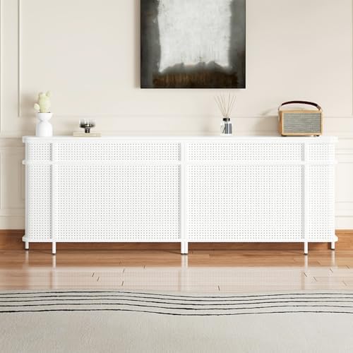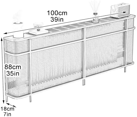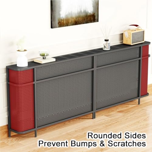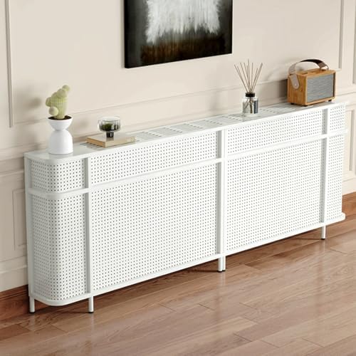 Enhance your living space with our Metal Radiator Cover, designed not only to conceal unsightly radiators and exposed pipes but also to provide a stylish storage solution for your home. This versatile radiator cover shelf is perfect for displaying books, plants, or decorative items, effortlessly adding a touch of elegance to any room, including living rooms, bedrooms, hallways, and offices. Crafted from durable carbon steel, our radiator cover is available in classic white and black finishes to complement various decor styles. With dimensions of 39 inches in length, 35 inches in height, and 7 inches in width, it offers generous surface area while maintaining a sleek profile. Boasting a load capacity of 220 lbs, it’s robust enough to support your favorite items. Featuring a rounded design and raised base, this radiator cover promotes better airflow, ensuring your space remains comfortable while enhancing the aesthetic appeal. The breathable slats not only provide ventilation but also add a contemporary touch to your interiors. Installation is a breeze with our quick installation process, allowing you to transform your space in no time. Whether you’re looking to upgrade your home, office, or school environment, this radiator cover is the ideal choice for blending functionality with style. Included in the package are one heat cover for radiators and all necessary mounting hardware, making it easy to get started right away. Elevate your space with our Metal Radiator Cover and enjoy the perfect combination of practicality and beauty.