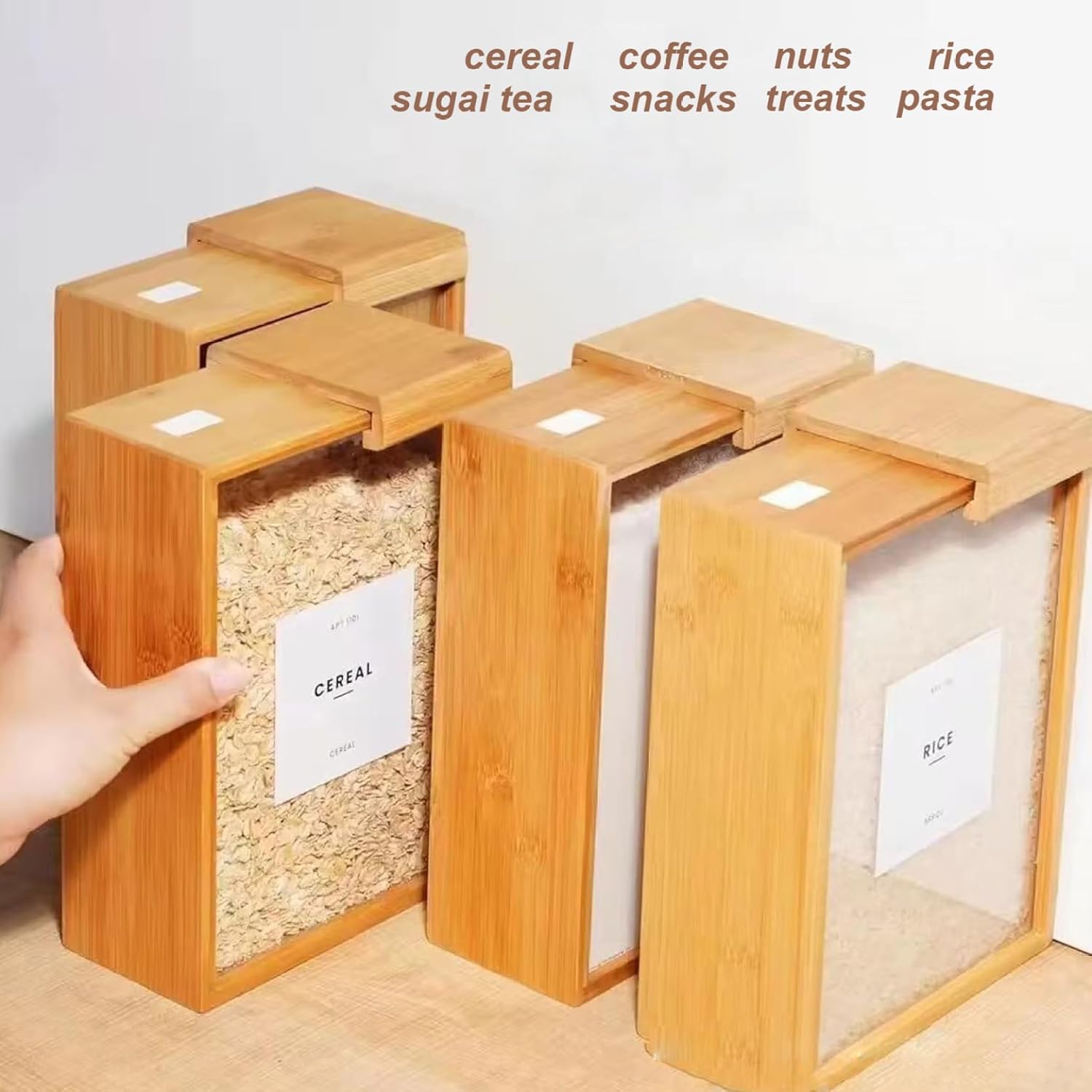 Description: These wooden cereal storage containers with airtight lids combine functionality with aesthetic appeal, a reliable solution to keep your rice, flour, snacks, and pet food fresh and well-organized. Each 3L container features a secure airtight seal that blocks out and contaminants, preserving the quality and flavor of your dry goods. The natural wooden construction ensures durability and adds a rustic touch to your kitchen or pantry décor, while the versatile design allows you to store multiple types of food, including cereals and flour. Compact yet spacious, these containers help reduce clutter and improve kitchen efficiency. Additionally, the removable lids and smooth interiors make refilling and cleaning quick and hassle-free, supporting everyday convenience. Perfect for households seeking attractive, and multi-functional food storage solutions, these cereal dispensers enhance both storage organization and food. Features:. -Color: Wood Color. -Material: Wood. -Size: about 17.2x7.8x22.3 cm/6.8x3.1x8.8 inch. Note:Manual measurement, please allow slight errors on size.The colors may exist slight difference due to different screens. Package Including 3 x Cereal Storage Containers