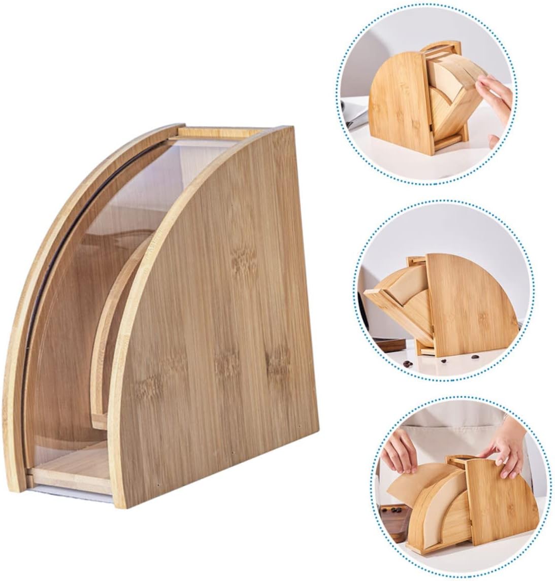 Package List 1 x Filter Paper Box Features -Color:As Shown coffee filter stand holder -Material:Wood coffee filters stand -Size: 15.70X8.20X16.70cm/6.17X3.22X6.56in coffee filtering paper stand -Compact size and lightweight, which will not occupy much space of your desktop coffee filters holder. -It has a good function of wear resistant, and can keep coffee filter paper neat coffee filter storage container. -Adoption of , sturdy and , which can be used for a long time coffee filter storage holder. -Large capacity, and it can accommodate enough number of coffee filter papers at the same time coffee filter holders. -Creative design, and beautiful, which is an adornment for your desktop countertop coffee filter stand.Goods Descriptioncoffee filters stand It is made of high-grade material and can hold a variety of coffee filter papers at a time.simple style filter is a very filter paper storage rack.coffee filter holders Are you still looking for a Coffee Filter Paper Storage Rack? Have you found a suitable filter paper holder that meets your requirements? If you haven’t already, then you must take a look at our coffee filter paper holder