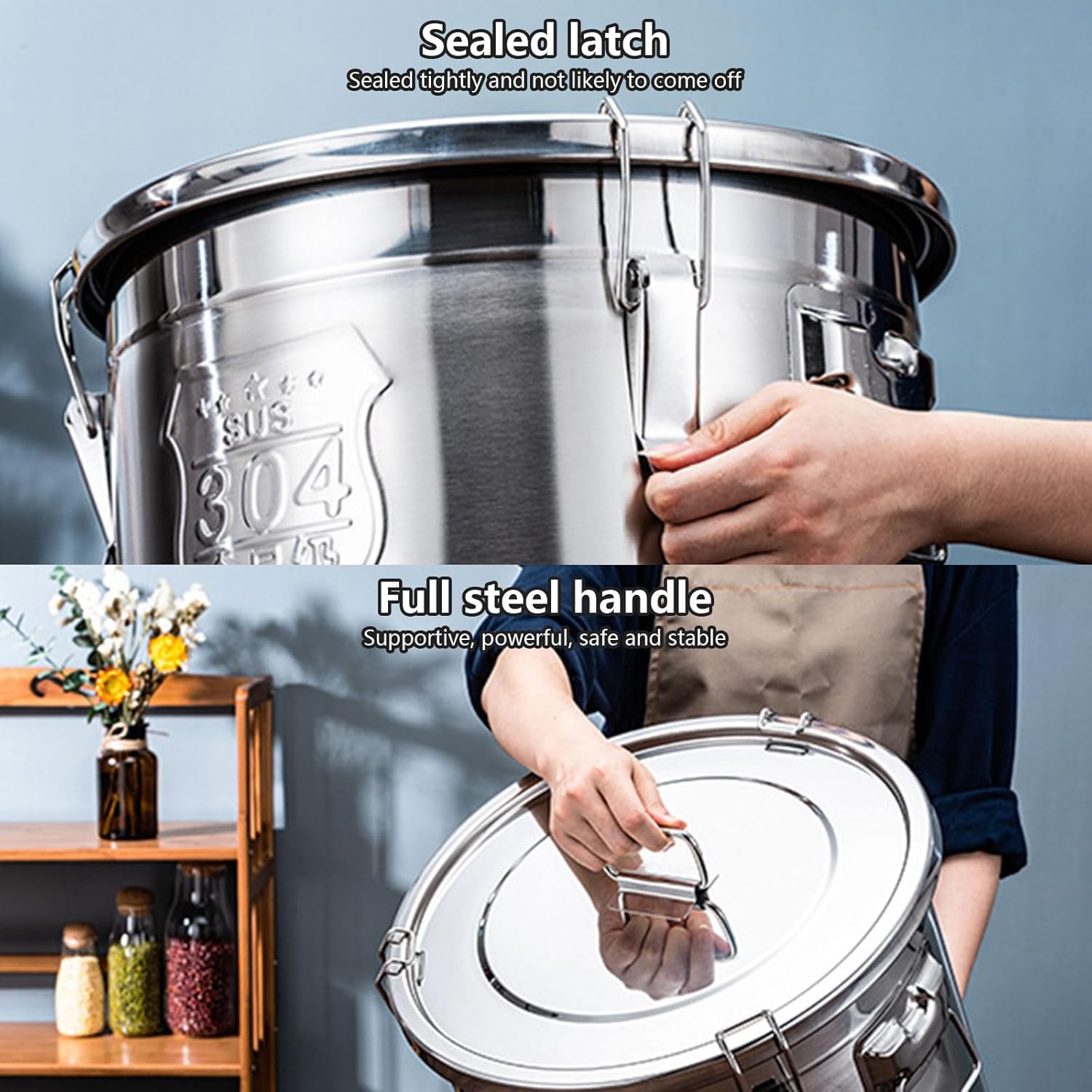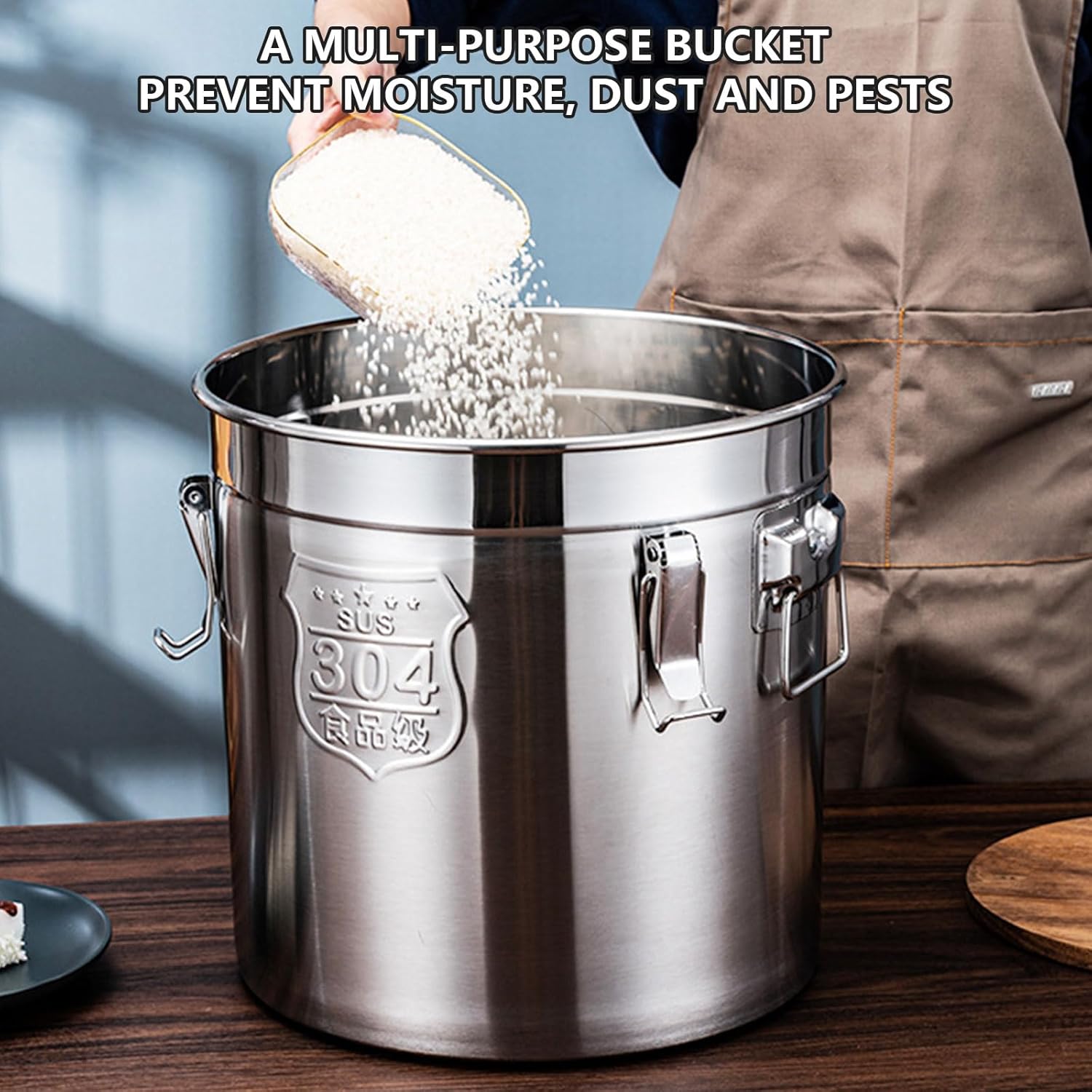 6L Nonrust Steel Sealed Food Storage Container 3 Seal Design Storage Bucket For Kitchen Commercial Home UseFeatures:Crafted with premium 304 stainless steel and triple seal technology, this 6L sealed storage container ensures long time freshness for up to 19lbs of dry goods, combining durability with superior and resistance.The 0.236 inch thick wall and 201 stainless steel clasps work with food grade silicone gaskets to create a leakproof barrier, while the surfaces enables effortless cleaning and maintenance.Designed for households and commercial kitchens, it serves coffee enthusiasts, bakery owners, and families needing bulk ingredient preservation or versatile organization solution.Store coffee in pantries, flour in bakeries, or rice in restaurant preps areas while using the detachable lid for umbrella storage in entryways or recreational vehicle kitchens.Its reinforced base and seamless construction warping under heavy loads, making it a sturdy upgrade over alternatives for organizing seasonings, pet food, or camping supplies.Specifications:Materials: 304 Stainless SteelSize:Approx. 20x20cm/7.87x7.87inchesPackage Includes:1Pc 6L Stainless Steel sealed Storage ContainerNote:1.Please allow 1-2cm errors due to manual measurement, make sure that you donot mind before you order. 2.Due to the differences between different monitors, the picture may not reflect the actual color about the item.
