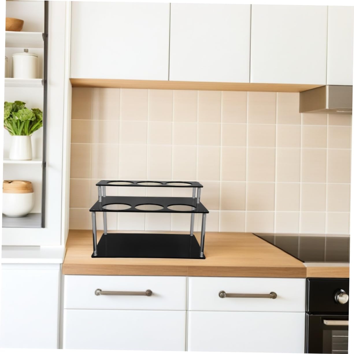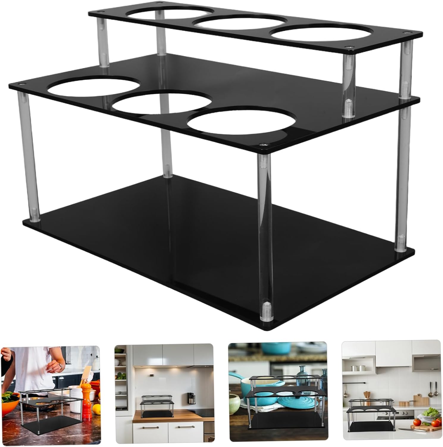 DescriptionCrafted from acrylic material, this coffee syrup bottle rack offers a sleek and modern design that complements any kitchen countertop. Its multi-tiered structure provides ample space for organizing syrup bottles, condiments, or wine bottles, ensuring easy access while maintaining a tidy and stylish appearance.Features-Color:Black-Material:Acrylic-Size:32.00X19.00X19.00cm/12.58X7.47X7.47in-Elegant design: crafted from sturdy acrylic, this transparent rack adds a touch of sophistication to your kitchen or bar countertop, enhancing the overall aesthetic appeal-Spacesaving tool: featuring a twotier design, it maximizes vertical space, allowing you to organize multiple syrup bottles and condiments efficiently- construction: built with strong acrylic material, it offers excellent weightbearing capacity, ensuring stability and easy access to your bottles-Versatile usage: ideal for coffee shops, restaurants, and home kitchens, this rack keeps your countertop tidy while simplifying daily use and cleaning-Universal compatibility: designed to fit standard syrup and bottles, it serves multiple purposes, making it ideal for various settings and occasions
