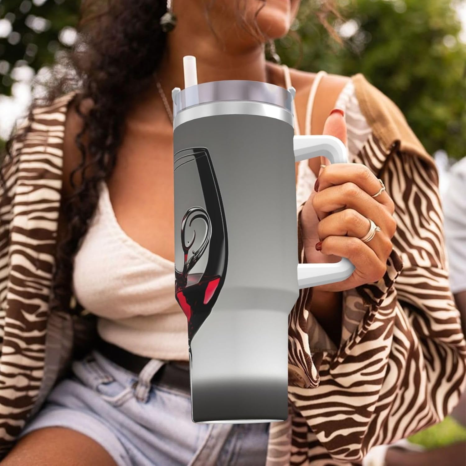 This Wine Glass Print Ice Bully Cup features a double layer stainless steel design that can be used for a long time without rusting. The lid has good sealing to prevent water from overflowing, and it is easy to unscrew for filling and cleaning. It can keep water, coffee, or drinks warm or cool for hours and is suitable for travel, camping, and driving.