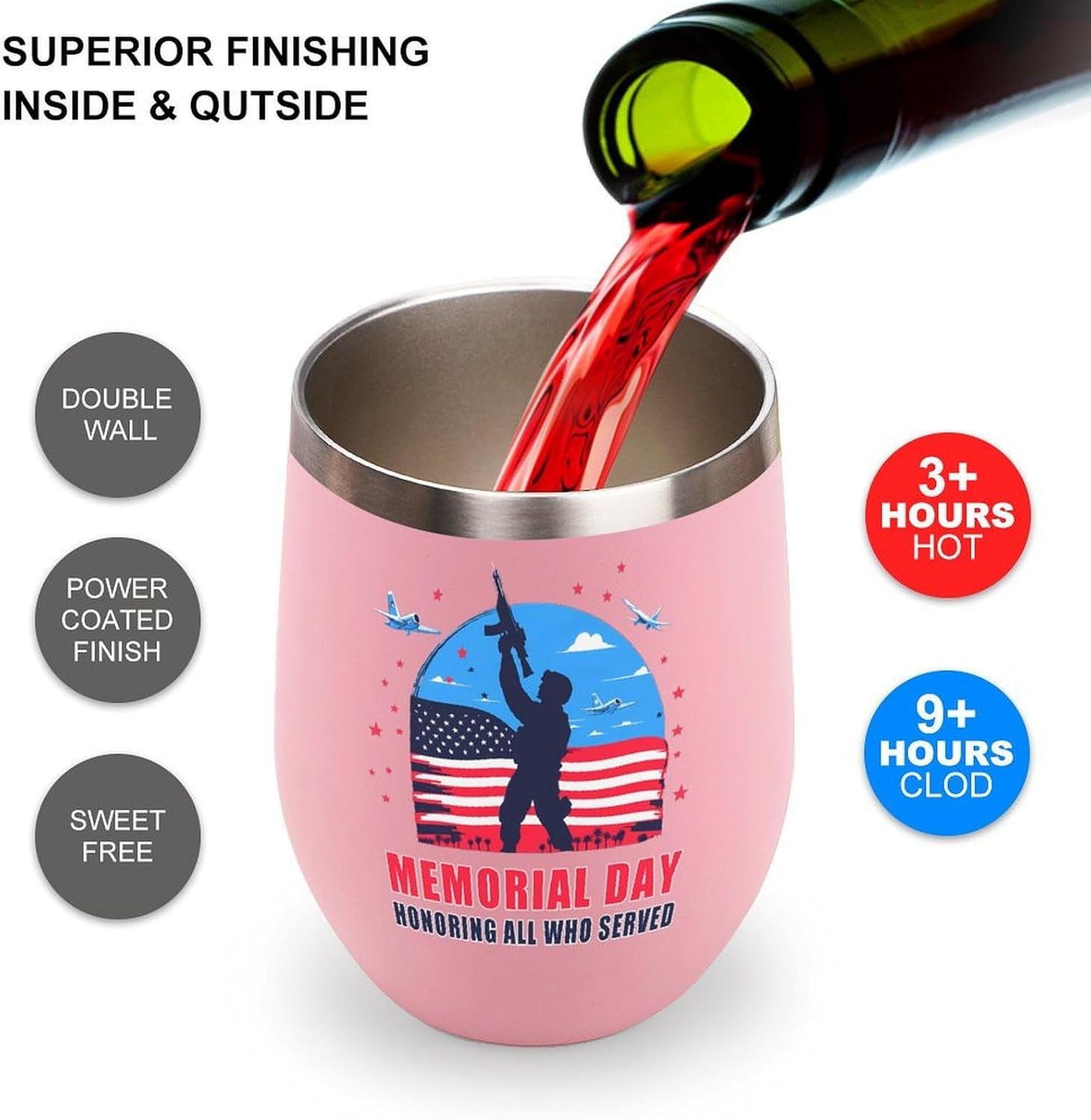 Honoring Soldiers Memorial Day Insulated Drinking Cup Stainless Steel Coffee Mug Wine Tumbler with Lid 12OZ