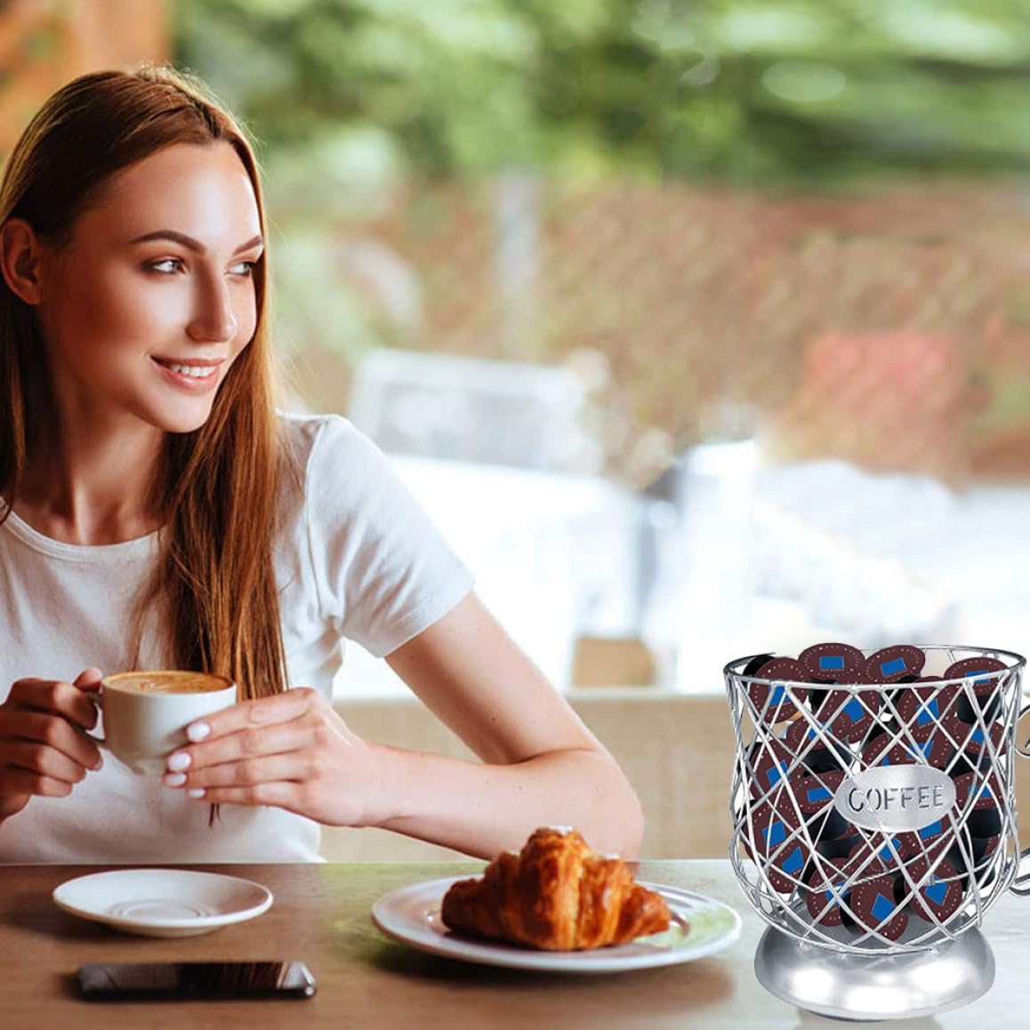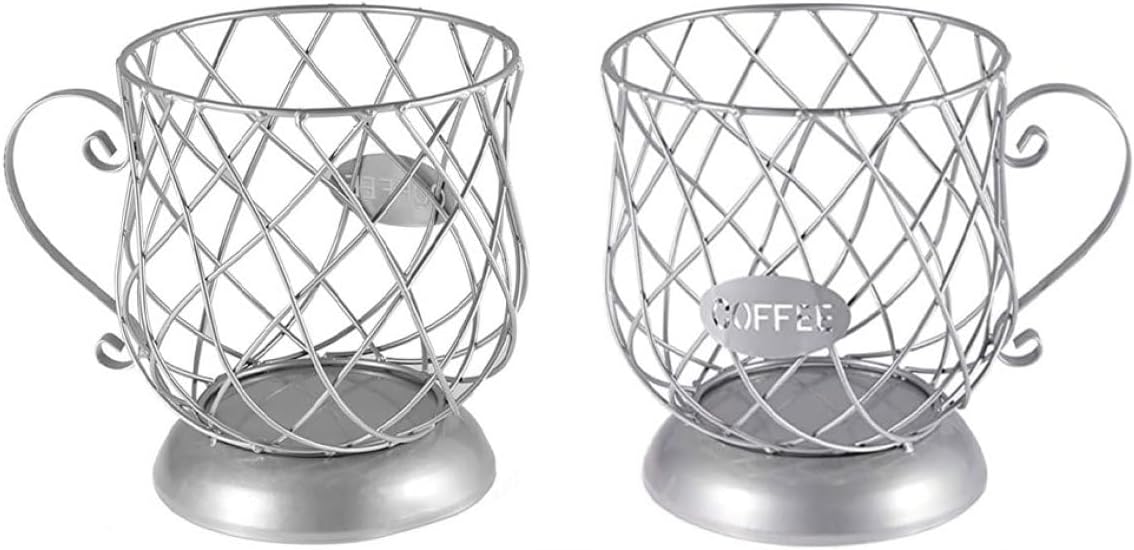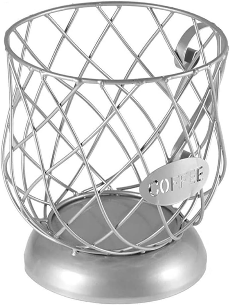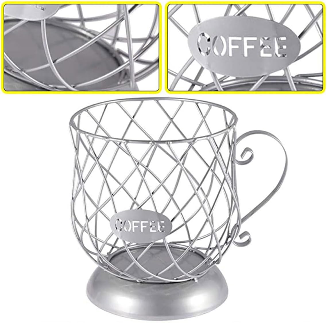 Description Coffee pod holder with large mug shape and handle is a very good storage device for storing coffee capsules or other snacks or fruits on the bar and coffee table. Coffee storage basket with metal wire design is a good choice for those who want counter to be organized. Features Coffee pod holder -Color: Silver. -Material: Iron. -Size: 18.5x17.5x17.5cm/7.28x6.89x6.89inch. Coffee pod holder is also a perfect gift to someone live in new house as a housewarming gift. Package Including 1 * Coffee pod holder
