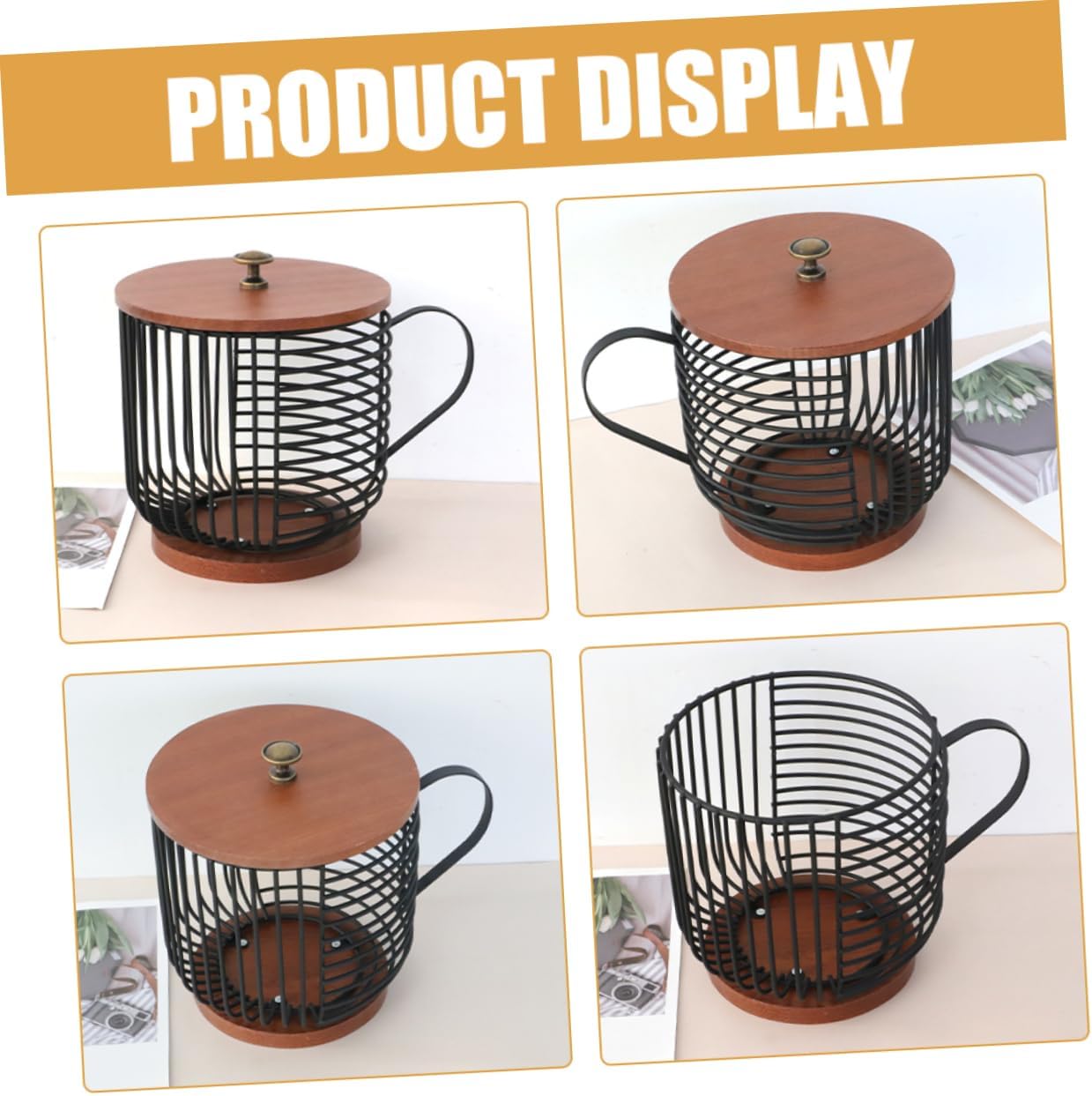 Package Include 1 x Coffee Capsules Storage Basket Features -Material:Iron, wood Home Accessory -Size:21.50X18.00X16.00cm/8.45X7.07X6.29in Iron Basket -Color:Black Metal Storage Basket - Made of iron, wood material, this storage basket stable and sturdy, it is very sturdy and stable to use, not easy to break Coffee Capsules Storage Basket. - Not only can it be used as a coffee holder, but also it can be used to hold fruits, snacks, and other items Coffee Bar Basket. - This storage basket has a large capacity, can hold a large number of coffee , enough for both home and cafe use Coffee Capsules Storage Container. - Exceptional design that enhances the aesthetics of your home. Large openings which makes access to items easy Coffee Bar Storage Basket. - Stable construction that's built to last. Improves space utilization on your desk by providing storage coffee basket.Goods DescriptionOrganizer for Countertop Its unique design resembles a tea cup, adding a touch of elegance to any space.Storage Organizer The attached lid that your cups stay clean.Metal Wire Storage Basket The Storage Rack is a creative and beautiful storage basket made of wood and iron.Iron Display Basket With its large capacity, it can hold multiple Coffee Capsules, saving space.Home Accessory It is not only a storage rack but also a decorative piece