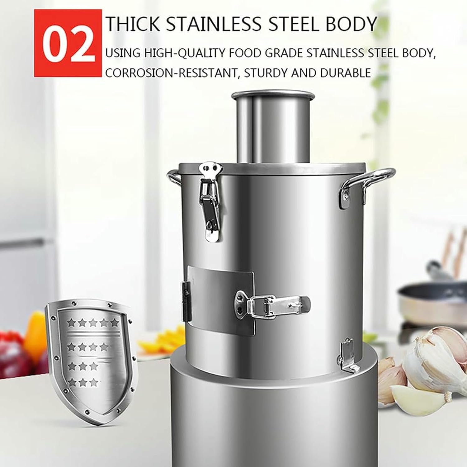 Describe: The garlic peeling machine is suitable for commercial purposes, such as restaurants, barbecue shops, canteens, hotels, etc. It's also great for cooking at home.About peeling: 1. The garlic grinder can only take out garlic. 2. Just dry the garlic and add it. 3. Red garlic/purple garlic/single garlic have low peeling rate 4. Do not peel wet fresh garlic.Specification: Name: Fully automatic garlic peeler Product material: stainless steel Rated power: 200W Production per hour: 25KG/h Peeling rate: 98% Product size:22*21*51cm Net weight:8.5kg condition: new unit_count: 1 standard_product_id: 1packing list: 1x garlic peeler 1xEnglish manualIntroduction: Garlic Harm The garlic will be a little damaged when it comes out (buy with caution if this is unacceptable) Not suitable for sale in the market (applicable to hotel barbecue restaurants, hotel western restaurants, etc.) The function of the machine is mainly about high efficiency, which solves the problems of peeling hands and chronic pain.