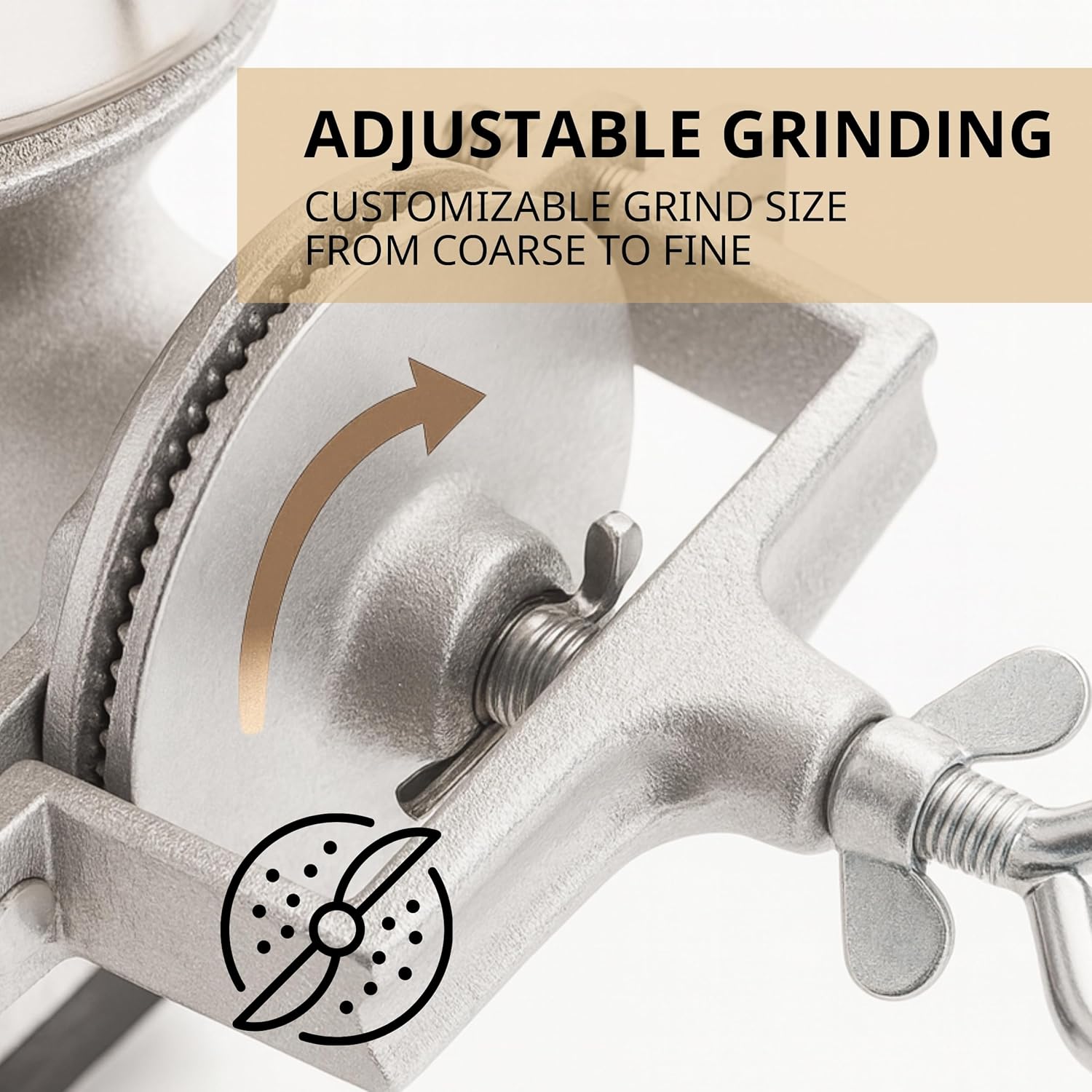 Experience the satisfaction of old-world milling right at home with our premium manual grain grinder. Built from durable cast iron with a sleek silver finish, this flour mill manual includes a hand crank mill grinder, two interchangeable hoppers (low and high), a secure rubber pad, a cover plate for mess-free grinding, and an extra safety pin for reliable performance. Whether you're grinding coffee, rice, nuts, or turning wheat into flour, this versatile grain grinder mill handles it all. Designed for convenience and stability, the clamp-on base stays firmly in place, while the hand crank mill wheat flour grinder offers smooth, effortless control. It's the ideal grain mill grinder for home bakers, DIY enthusiasts, or anyone embracing a healthier, homemade lifestyle. Thanks to the two hopper sizes, you can quickly switch between small and large batches—making this manual grain grinder both flexible and efficient. The protective rubber base keeps your surfaces scratch-free, while the cast iron construction ensures years of dependable use. Whether you need a reliable corn grinder mill for everyday cooking, a hand corn grinder for fresh grits, or a traditional wheat mill grinder, this unit covers all your milling needs. It doubles as a corn cracker mill, works great as a hand grain mill grinder, and easily transforms into a flour mill hand crank setup for home kitchens. Take control of your ingredients with this all-in-one hand grain grinder. If you're looking for a true mill hand grinder or a corn grinder manual that delivers texture precision and durability, this is your best bet. Upgrade your pantry with a traditional tool that still outperforms electric mills—choose our cast iron hand crank mill grinder today and taste the difference.