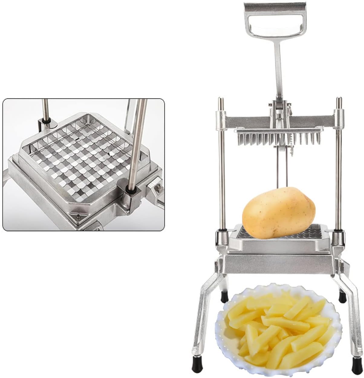 This food dicer chopper is made from high-quality materials that ensure its durability, strength and long-lasting performance. The chopper dicer consists of sharp blades which cut vegetables, fruits and other edibles in uniform pieces, making it ideal for onion chopper dicer, veggie chopper dicer and vegetable chopper dicer.Specification:Product Weight: 7 kg (15.4 lb)Packing Weight: 8 kg (17.6 lb)Material: Aluminium Alloy + Stainless SteelProduct Size (L*W*H): 32 x 32 x 40 cm (12.6 x 12.6 x 15.7 inch)Packing Size (L*W*H): 32 x 32 x 38 cm (12.6 x 12.6 x 15 inch)Packing List:1 x Commercial Fruit Vegetable DicerFeature:Aluminum Alloy FrameThe frame is constructed of aluminum alloy material, featuring once die-casting design. Durable, antioxidant, and durable.Stainless Steel BladePrecise blade adopts imported stay-sharp food-grade 304 stainless steel. Vegetables and fruits can be chopped into 1/4-inch uniform dices in a fraction of the time.Convenient HandleThis vegetable dicer is incredibly easy to operate. Simply load fruits or vegetables onto the blade assembly, and push down the ergonomic handle.Non-Slip FeetFour feet covered with four rubber boots makes this commercial vegetable chopper stable enough, greatly enhancing the stability during its operation.Hassle-Free CleaningThe blade assembly and the cutter head can be easily disassembled. All parts are washable, not easy to corrode, and rugged.Versatile UseSuitable for home and commercial use, which can be used to cutting cucumbers, onions, tomatoes, mushrooms, bell peppers, celery for salads or cooking, and fruits.7