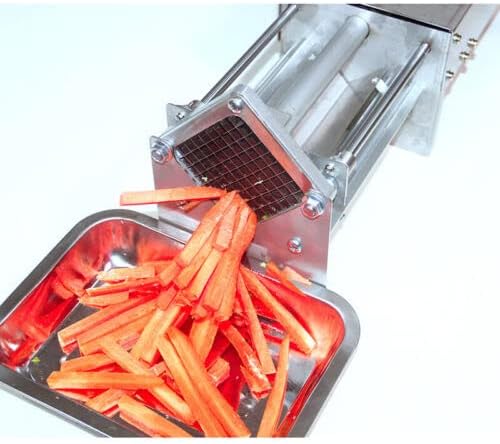 Multifunctional: This french fry press cutting machine comes with 3 replacement blades to adjust the vegetable and fruit cut to your size preference, with ease of use and convenience. Simply pick the grid according to the desired fry size, place the vegetables and fruits facing the cutting grid, and you will get your geometrically perfect fries and wedges! It is excellent for cutting various vegetables and fruits, including cucumbers, zucchinis, carrots, apples, and more. Specifications: Name: Electric French Fries Cutter Material: Stainless Steel + Aluminium Alloy Blade size: 7MM, 10MM, 14MM Weight: about 8kg Attention: 1. Please allow measurement with slight deviation. 2. Due to the difference between different monitors, the pictures may not reflect the actual color of the item. What in Package: 1 X Electric French Fries Cutter 3 X Blades (7mm, 10mm, 14mm)