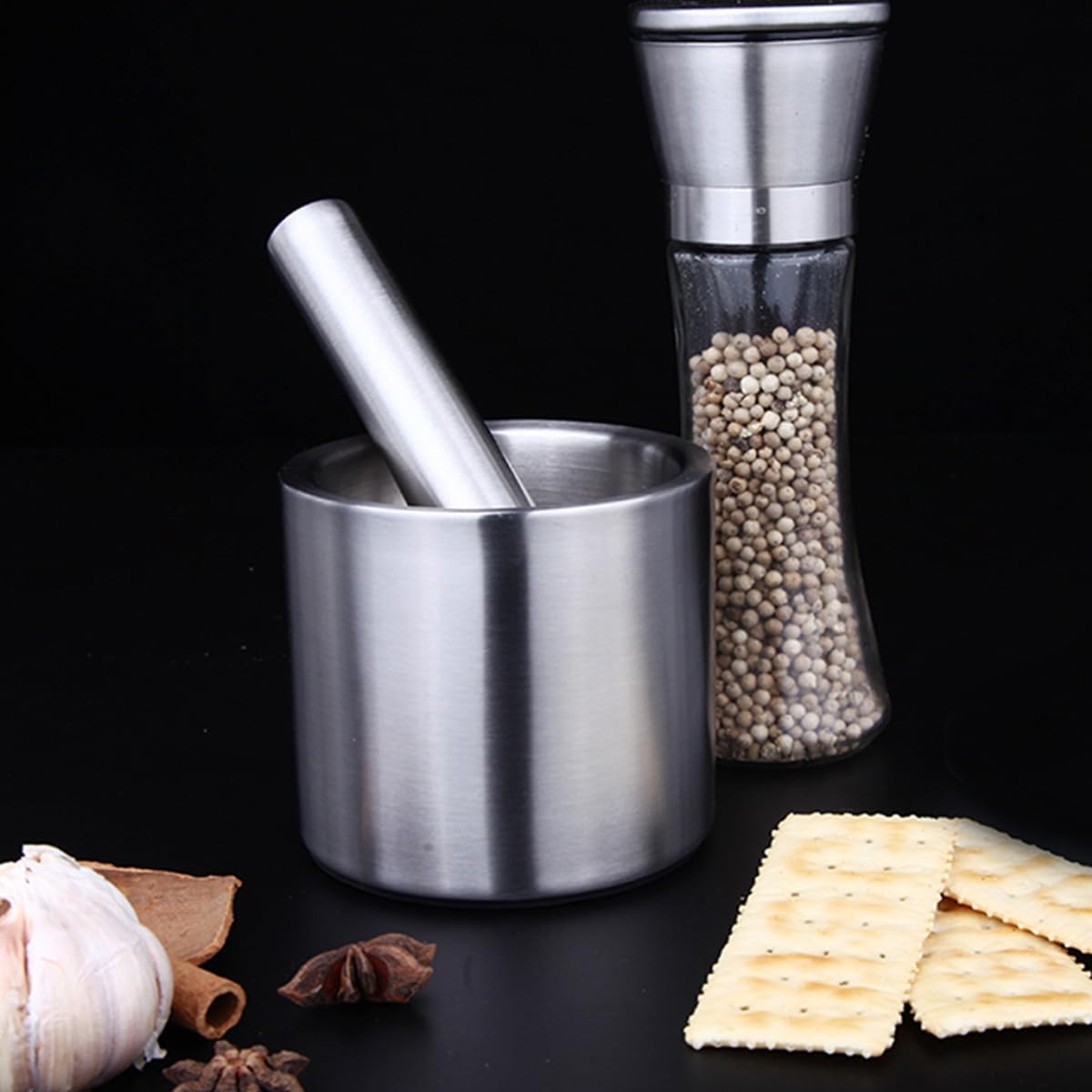 Package List 1 x Garlic Masher (with Silicone Lid) Characteristics - Size: 10x10x8.5cm/3.9x3.9x3.3 inch. - Color: Silver. - Material: Stainless Steel . -Product Info:Stainless steel garlic pounder - A great, modern design that will look great in any kitchen or pharmacy Masher for Garlic. - Ergonomic design the smooth use of the time Household Garlic. - Made of material for long time use. - Easy to clean, will not cause the to retain the flavor of the original spice. - It is widely used and can be used for spice grinding, and it can also be used for the grinding of .Goods DescriptionMasher for Garlic A great, modern design that will look great in any kitchen or pharmacy.Garlic Masher It is widely used and can be used for spice grinding, and it can also be used for the grinding of.Household Garlic Ergonomic design the smooth use of the time.Garlic Tool Made of material for long time use