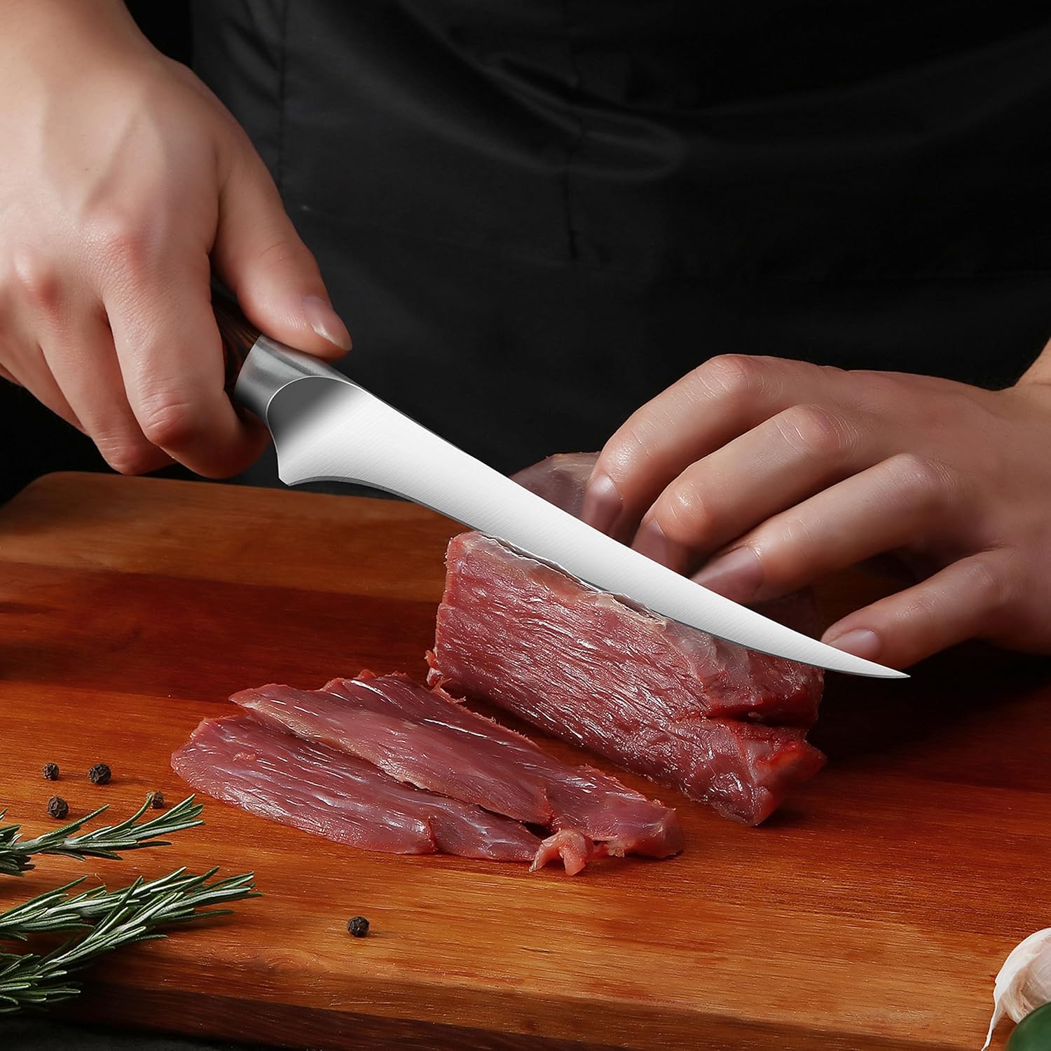 SET OF TUO Fillet Knife, 7 Inch Professional Fish Boning Knife for Trimming Meat & Poultry AND TUO Meat Cleaver, 7 inch Heavy Duty Meat Chopper