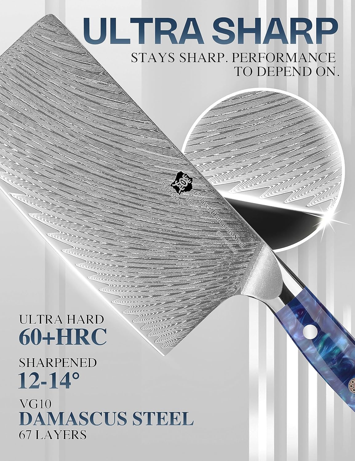 | Color | Silver Damascus steel feather pattern Blade, Blue Resin Handle |