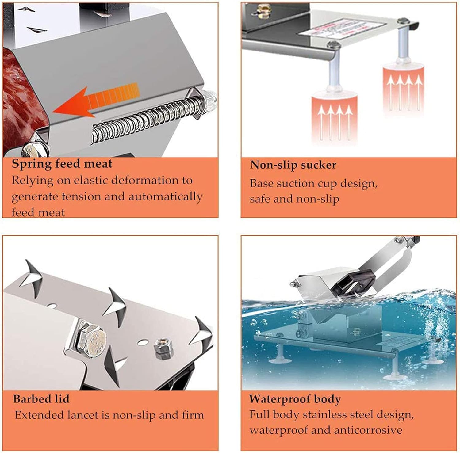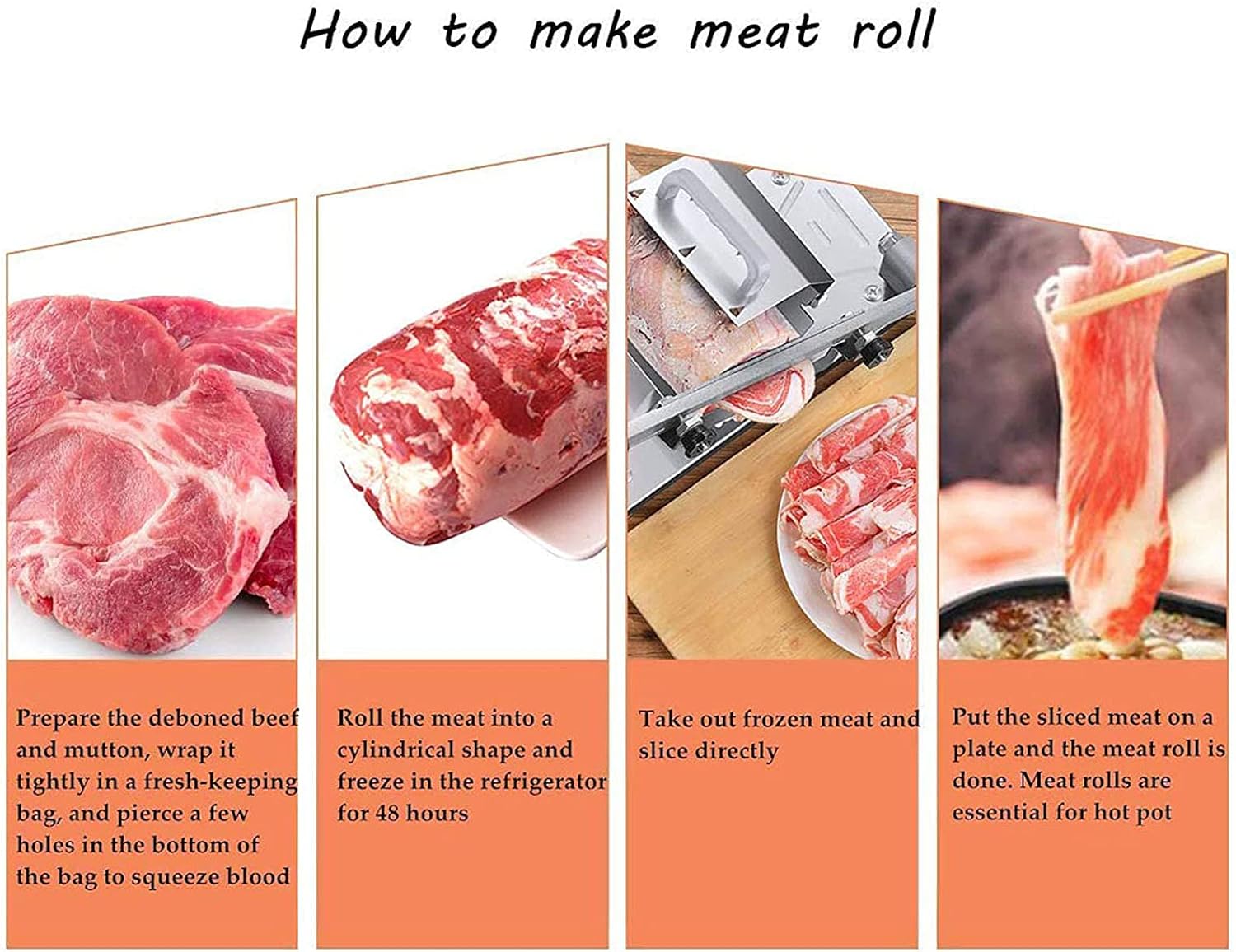 ★Features:FROZEN MEAT SLICER has a slice thickness uniformity, and rolling effect, easy operation and other notable featuresSlice thickness can be adjusted from 0.5 to 8 mm, high efficiency meatQuickly cut ingredients, not only meat, but also hard vegetables, such as potatoes, cucumbers, carrots, etc.The use of alloy steel blades, high speed steel blade durable than 2-3 timesAffordable, suitable for restaurants, hot pot restaurants use, but also an indispensable tool for the home kitchen supplies★Optimization:Pressing meat functionThe cover is used to pressing the meat, avoid the meat slippingSuckerHigh quality sucker prevent machine sliding★Specification:Blade material: thickening and high quality alloy steelFuselage material: stainless steelRotation method: knob fast adjustmentCleaning method: water washingSize:270*140*50mmWeight: 2130g
