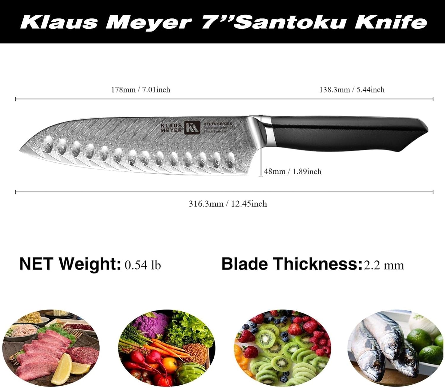 · Blade Length*Width: 7.01 in * 1.89 in · Handle Length: 5.44 in · Blade Thickness: 2.2 mm · Wood Sheath Contained