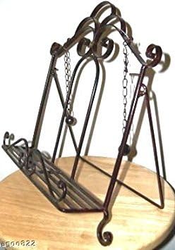 There's a lot of pressure to make this holiday the best one yet. It's the first time you're hosting the entire family at your house, and you want everyone to appreciate the lengths you've gone to in order to make this season feel like the holidays you remember from years ago. This season, you've instructed everyone to come empty handed. You don't want your sister to bring a tray of desserts. You don't want your mother cooking the turkey and then warming it in your oven. You are determined - you are going to do it all yourself. The night before the big meal, you make the necessary preparations, wash and cut the vegetables ahead of time, and get all of your baking pans and serving trays set up on the counter. The table is made, and there's only thing left to do. From the top kitchen shelf, you pull down a leather bound notebook filled with handwritten recipes that your grandmother created and collected over the years. The very fact that you have the book means that your mother trusts you, and now it's your chance to shine and show everyone that your grandmother's traditions will be carried on. Iron Cookbook Stand ~ Book Holder ~ Easel, made from sturdy iron with vintage-inspired scrollwork. Perfect for placing on any countertop, butcher block, or kitchen island. Features a brown/rust finish. Measures 13""H x 12""L x 8"" W"