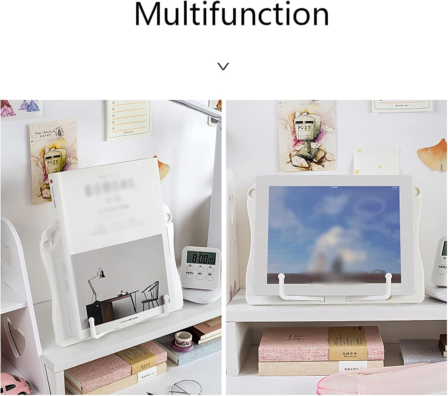 Multi-purpose: in the office, home, university, kitchen or bed. You can place cookbooks, novel books, etc., anywhere, or place music scores while playing guitar or piano. Very suitable for yourself or as a gift.Product name: color book standColor: Black , Gray , Pink , WhiteSpecifications: Dimensions: the length 26.5cm(10.4 inch), the width 19.5cm(7.7 inch)Purpose: Hold book, magazine, tablet etc.notes:1. Please choose size, color and number of pieces before ordering.2. Only the product is included, other props used for shooting are not included in the product, please confirm before purchasing.3. Please note that due to different monitors, there may be slight color difference, please understand.4. Due to manual measurement, some errors may occur, please refer to the actual product, thank you.5. Welcome your sharing and feedback so that we can provide you with better products and services.