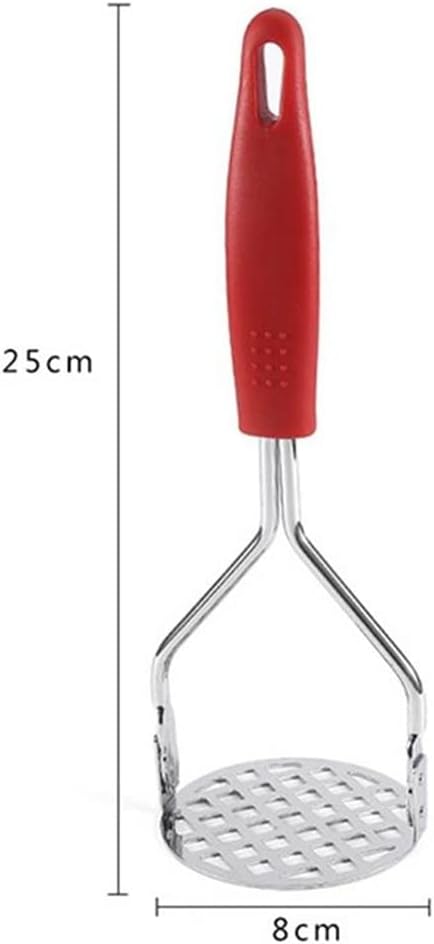Made of stainless steel, very and strong.A potato masher is the tool for any type of soft food. It's easy to make mashed potatoes, cooked carrots, sweet potatoes, cheesy veggies and more, and also great for making baby food and making banana bread.The potato masher follows ergonomic principles and has a comfortable handle. Provides you with a fairly comfortable grip and allows you to develop power more easily.The pressed surface and sturdy handle make potato pressing very easy with light pressure and effortless.The compact potato masher doesn't take up much space and is for mashing vegetables and fruits.Specification:Color: Silver & redMaterial: Stainless steel, PP () plasticSize: W*H: 8*25cm(3.15*9.84in)Package Included:1* kitchen gadgetsIf you have any questions about the product, please me, we will you within 24 hours and give you a satisfactory answer.