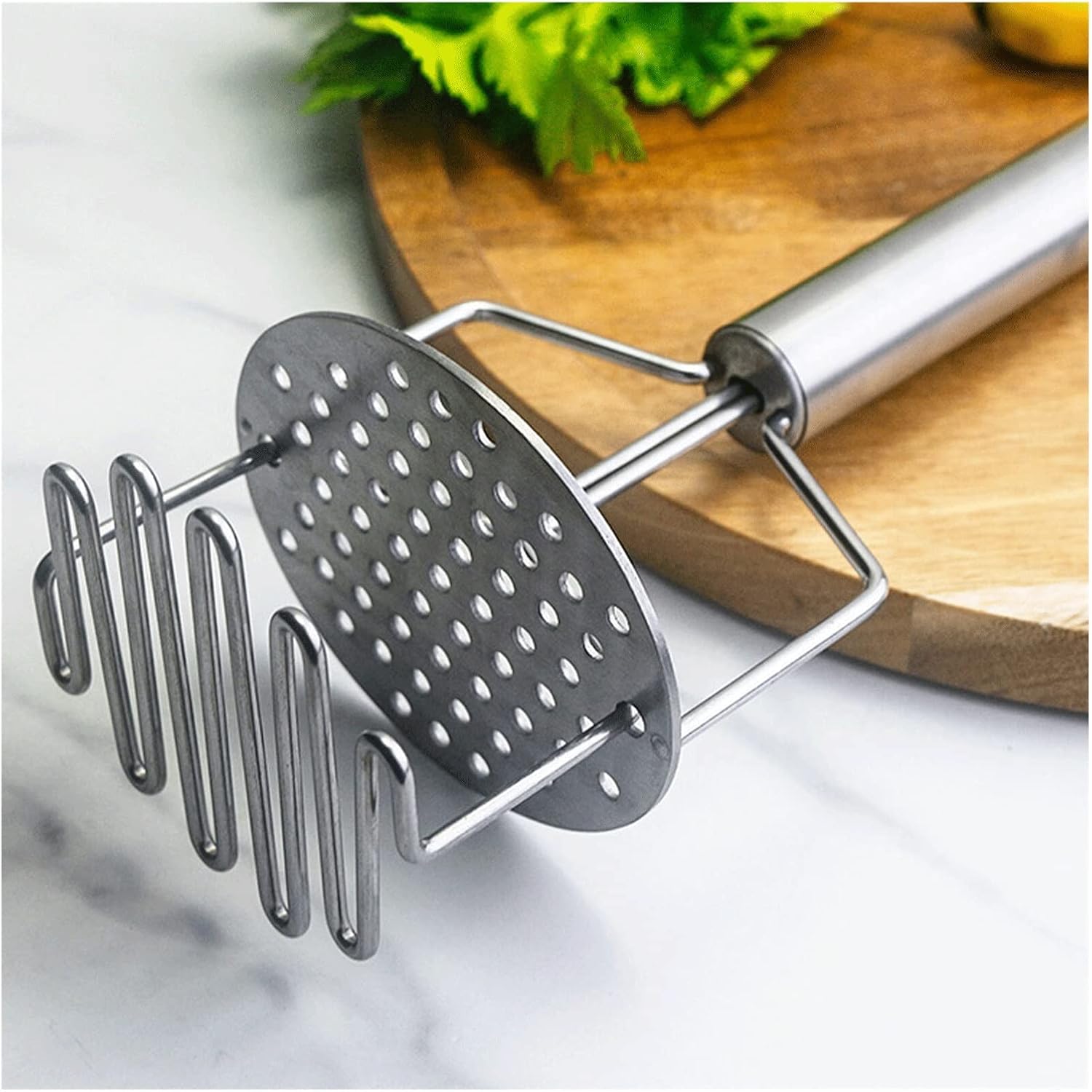Name: Potato masher and potato ricer Material: Stainless steel Product use: suitable for potato, sweet potato, bean, avocado, etc. 1*Mashed Potatoes Masher