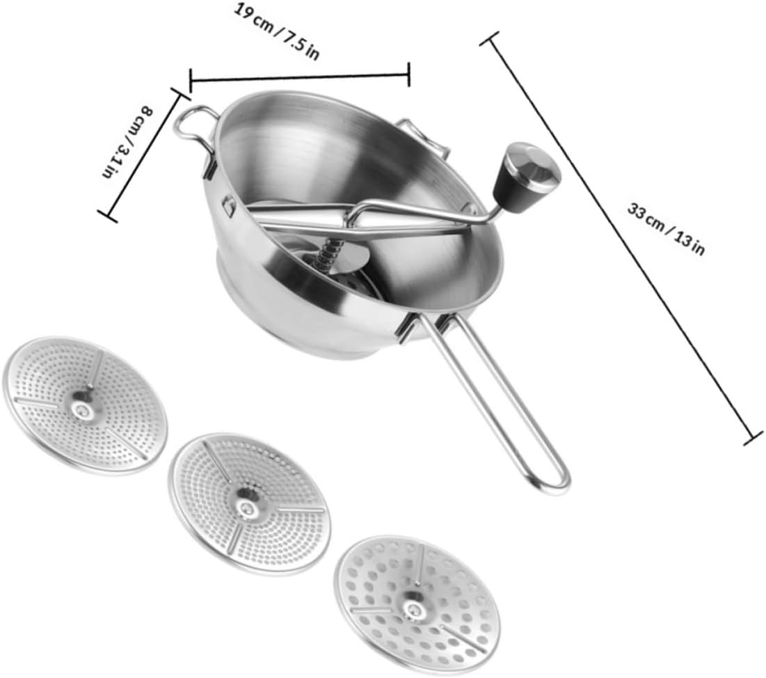 Package List 1 x Set of Potato Ricer Characteristics -Material:Stainless Steel -Size:33.00X19.00X8.00cm/12.97X7.47X3.14in -Color:Silver -Product Info:Food mixer -The material is good, and the workmanship is fine, giving you an excellent sense of use. -The workmanship of this product is perfect, and you will have a good experience in using it professional potato masher. -The Potato Masher can be used to mashed potatoes, sweet potatoes, yams, pumpkins, etc potato mashers. -This potato masher is very easy to clean, evenly curved holes, fine mashing smash potatoes tool. -The handle is comfortable to grip, moderate friction and stable operation mashed potato kitchen gadge.Goods Informationpotato grinder The handle is comfortable to grip, moderate friction and stable operation.stainless steel potato ricer It is very suitable for making pumpkin, carrot, potato and other fruit puree and vegetable puree.masher heavy duty potato Made of food-grade , safe and healthy.potato masher kitchen Made of stainless steel, it is easier to clean than other .potato masher grinder You can use it to make truly delicious meals for you and your family.kitchen utensils Mashed potatoes are super easy