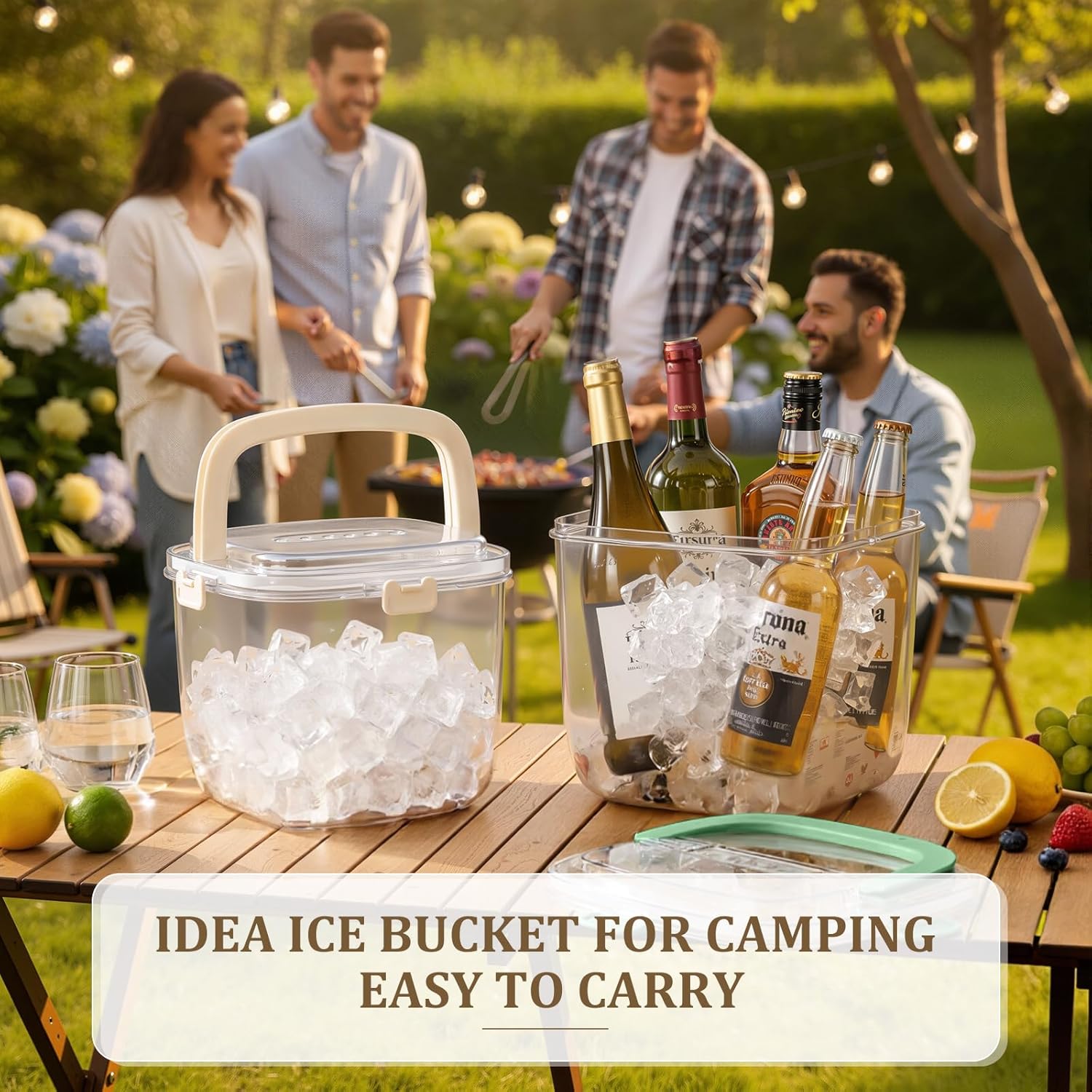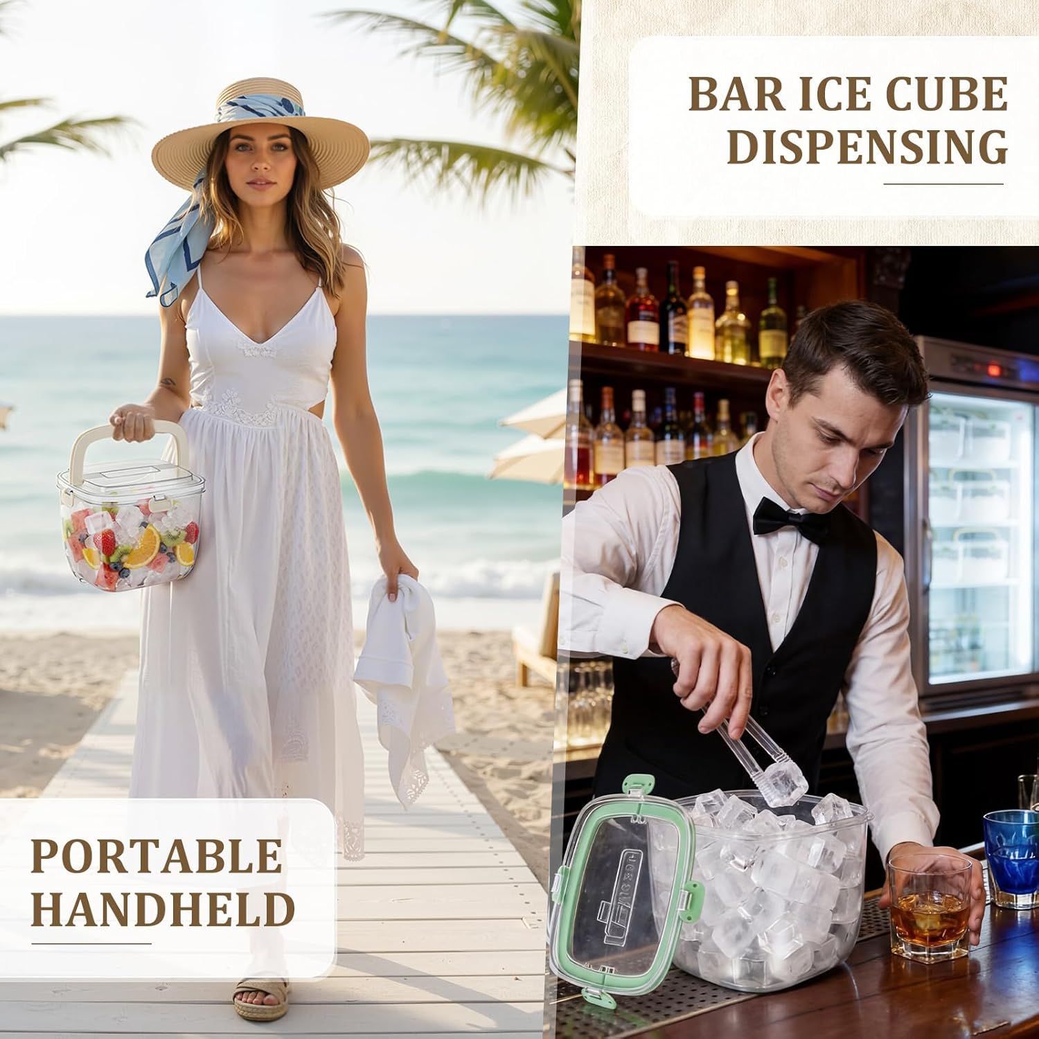 Features: Easy to use: This ice bucket is equipped with a handle, providing a comfortable grip and is convenient to carry, it can be easily filled with ice cubes, allowing you to enjoy the refreshing feeling of chilled beer, wine or fruits on a hot summer day. Large capacity: This ice bucket has a capacity of 5 liters. It is not only suitable for chilling various beverages such as champagne and beer, but also for chilling drinks to entertain friends at parties, it is a practical and essential item for parties. Specifications: Material: pp plastic Color: green, beige Size: 8.5 x 6.57 x 7.36 inches/ 21.6 x 16.7 x 18.7 cm Package includes: 2 Sets x Ice cube storage bin with sealed lid & tong Notes: Manual measurement, please allow slight errors on size. The color may exist a slight difference due to different screen displays