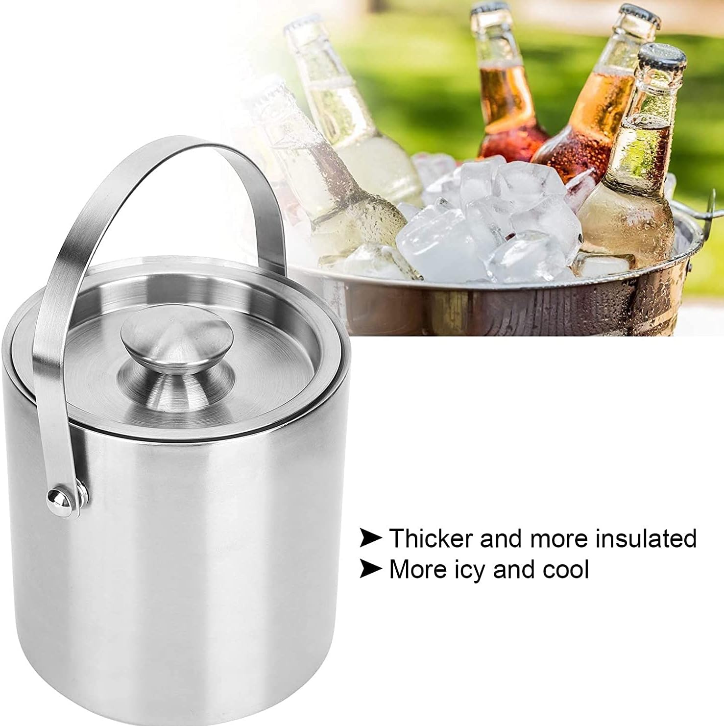 High?quality stainless steel, practical and durable, ?proof, double?layer design, good insulation effect, resistance and corrosion resistance. Perfect polishing process, bright and clean. Wiredrawing processing on the inner wall of the ice bucket, exquisite workmanship. Integral ing, high strength, strong toughness. Steady bottom of ice bucket, concave anti?skid design at the bottom, can absorb ice water and play a non?slip effect. Large opening design, more convenient to use. Handle design, slick, comfortable to grip. Thick lid design, with sealing ring, the cover is tight, outstanding cold preservation effect. Condition: Brand New Item Type: Ice Bucket Capacity: 2L Color: Silver Size: Approx. 13 x 15.5 x 15.6cm Note 1. Please allow 0.5?2cm error due to manual measurement. Thanks for your understanding. 2. Monitors are not calibrated same, item color displayed in photos may be showing slightly different from the real object. Please take the real as standard. Package List 1 x Bucket Body 1 x Bucket Lid Please allow slight dimension difference due to different manual measurement.