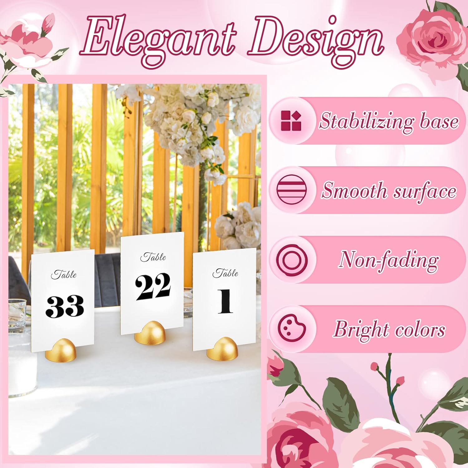 Features: The table number stand is designed with a groove at the middle, you can just insert the number card into it, and then place them on the table, simple and easy, no other installation needs. You can decorate your table with these wedding table number holders to leave a deep impression on your guests when they sit down for dinner, making them more delightful. Specifications: Number card: Material: coated paper Size: about 4 x 6 inches/ 9.8 x 14.92 cm in length and height Color: white with black fonts Wood stand: Material: wood Size: about 1.77 x 1.26 inches/ 4.5 x 3.2 cm in diameter and height Color: gold Package includes: 40 x Table place card holders 40 x Table numbers Notes: Manual measurement, please allow slight errors on size. The color may exist a slight difference due to different screen displays.