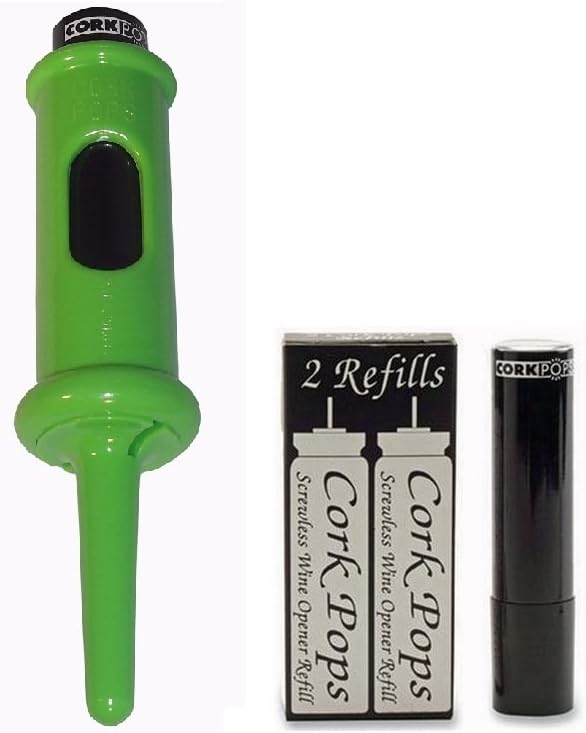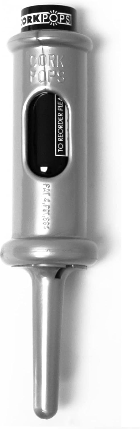 The Cork Pops Original Wine Bottle Opener is the tool that changed how wine is opened. Designed by the original inventor and trusted for more than 30 years, this classic push-button opener delivers fast, effortless cork removal with a single press. Whether you are opening a bottle for a quiet night at home or entertaining guests, Cork Pops makes the experience simple, smooth, and enjoyable. Unlike traditional corkscrews that require twisting, pulling, and hand strength, the Cork Pops opener uses a low-pressure, inert cartridge to gently lift the cork straight out of the bottle. Just remove the foil, insert the needle through the center of the cork, press the top, and lift as the cork rises cleanly from the bottle. There is no struggling, no broken corks, and no strain on your hands. This wine opener includes one refill cartridge, with each cartridge opening approximately 60 bottles of wine. The inert does not affect the taste, aroma, or character of the wine, making it safe for everyday use and special occasions alike. A built-in needle guard adds an extra layer of safety when the opener is not in use. Thoughtfully designed for ease of use, the Cork Pops Original Wine Opener is ideal for anyone who wants a faster, simpler way to open wine, including those with limited hand strength or mobility. Its straightforward operation makes it easy for beginners while still being trusted by professionals in tasting rooms. Proudly made in the USA, Cork Pops has remained a best-selling wine opener for decades thanks to its reliability, simplicity, and proven performance. Each opener is individually fitted in protective packaging and designed specifically for opening standard 750 ml wine bottles with traditional corks. Bring home the wine opener that started it all and enjoy effortless cork removal every time with Cork Pops.