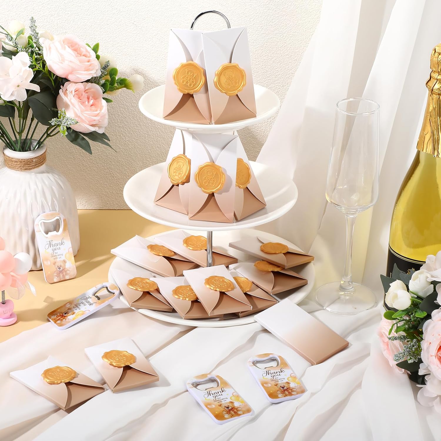 Features: Minimalist design: The design of this magnetic bottle opener is sleek and minimal, easily blending into any theme you might have for your baby shower. The color, material, and magnetic features work together seamlessly to give you a functional and durable product. Abundant in quantity: Our package includes 50 magnetic bottle openers, 50 gift boxes, and 50 stickers. This number can meet the needs of small to medium baby showers. No need to worry about running short of favors on your special day. Specifications: Material: Bottle openers: plastic, magnet Gift box and sticker: paper Color: Bottle openers and gift box: brown Sticker: gold Size: Bottle openers: about 3.4 x 1.6 inches Gift box: about 9.57 x 5 inches when unfolded Sticker: about 1.37 x 1.37 inches Package includes: 50 x Magnetic bottle openers 50 x Gift boxes 50 x Stickers Notes: Manual measurement, please allow slight errors on size. The color may exist a slight difference due to different screen displays.