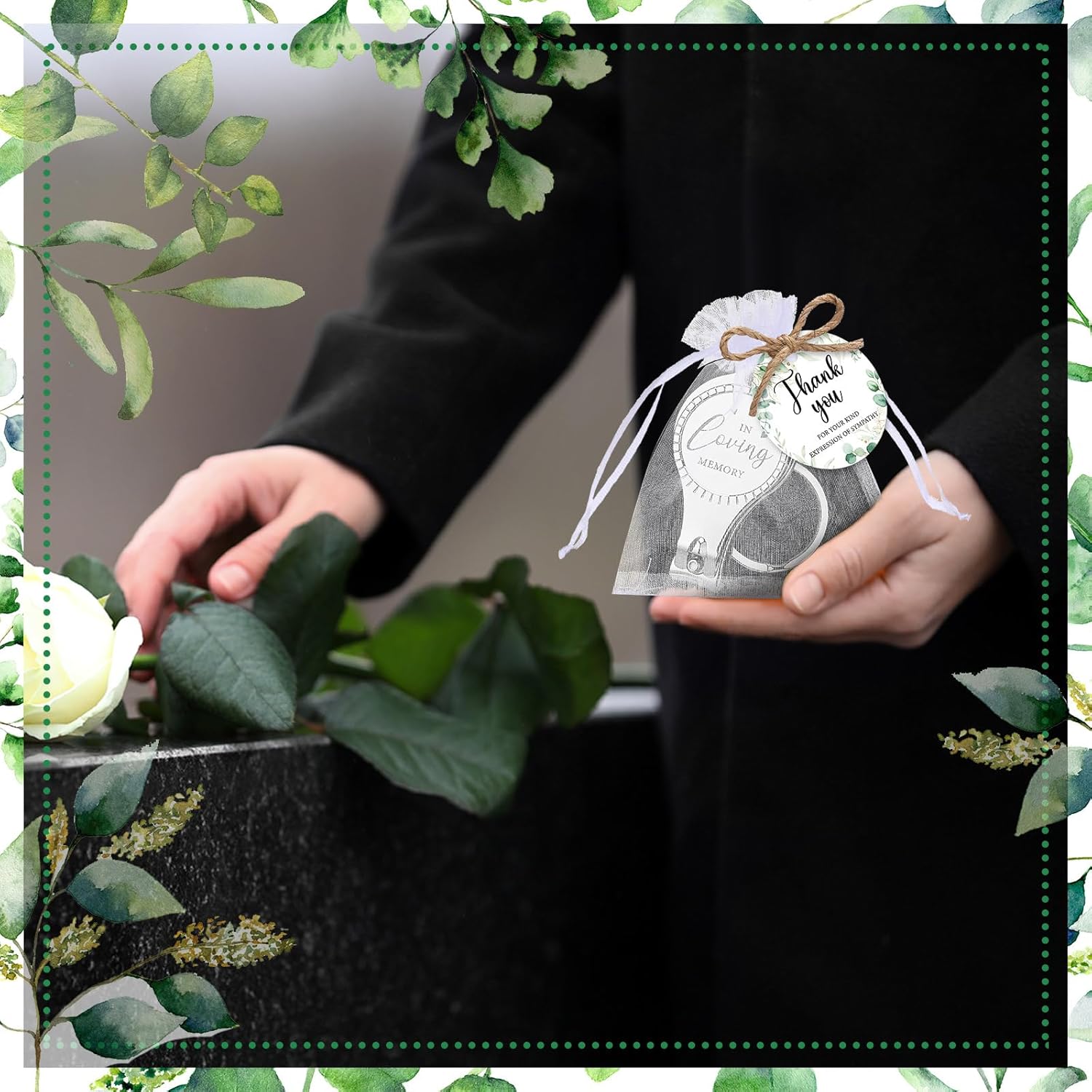 Features: Organza Bags for Charm and Protection: Transparent organza showcases the silver keychain and printed card, boosting funeral gifts elegance. It also protects the stainless steel from scratches during storage or transport. Lightweight and sheer, it keeps the design visible, leaving a lasting first impression on recipients. Ready-to-Gift Convenience for Busy Preparations: No extra assembly or pairing needed, each funeral supplies comes with the keychain, printed funeral thank you card, and organza bag pre-coordinated. Just add a handwritten note and it's ready to give to guests, saving you time when juggling event plans. Specifications: Material: stainless steel Color: silver Size: Multifunctional nail clippers bottle opener keychains: about 3.74 x 1.18 inches/ 9.5 x 3 cm(WxL) Thank you cards: about 2.36 inches/ 6 cm Organza bags: about 3.94 x 4.72 inches/ 10 x 12 cm(WxL) Jute rope: about 787.4 inches/ 20 M Package includes: 50 x Multifunctional nail clippers bottle opener keychains 50 x Thank you cards 50 x Organza bags 1 x Jute rope Notes: Manual measurement, please allow slight errors on size. The color may exist a slight difference due to different screen displays